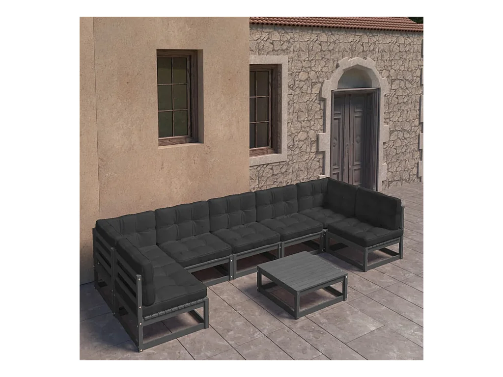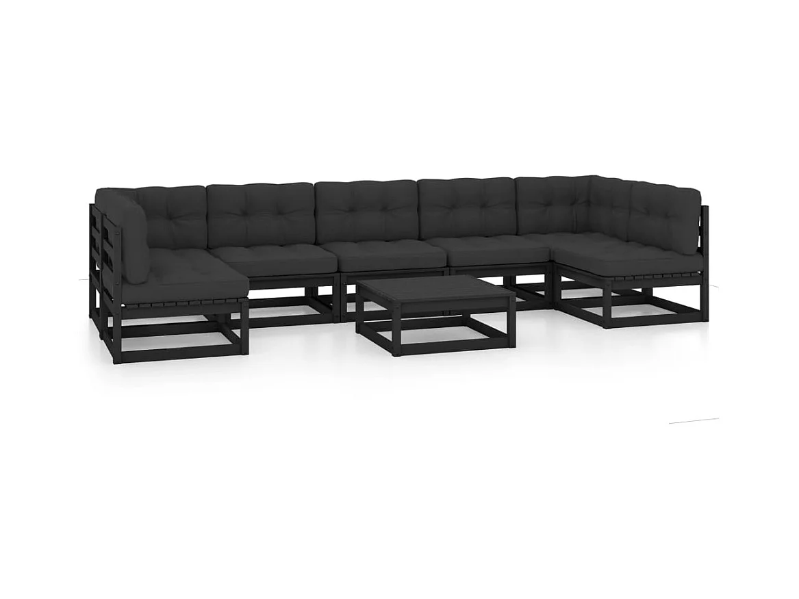 Salon de jardin 8 pcs avec coussins Noir Bois de pin massif