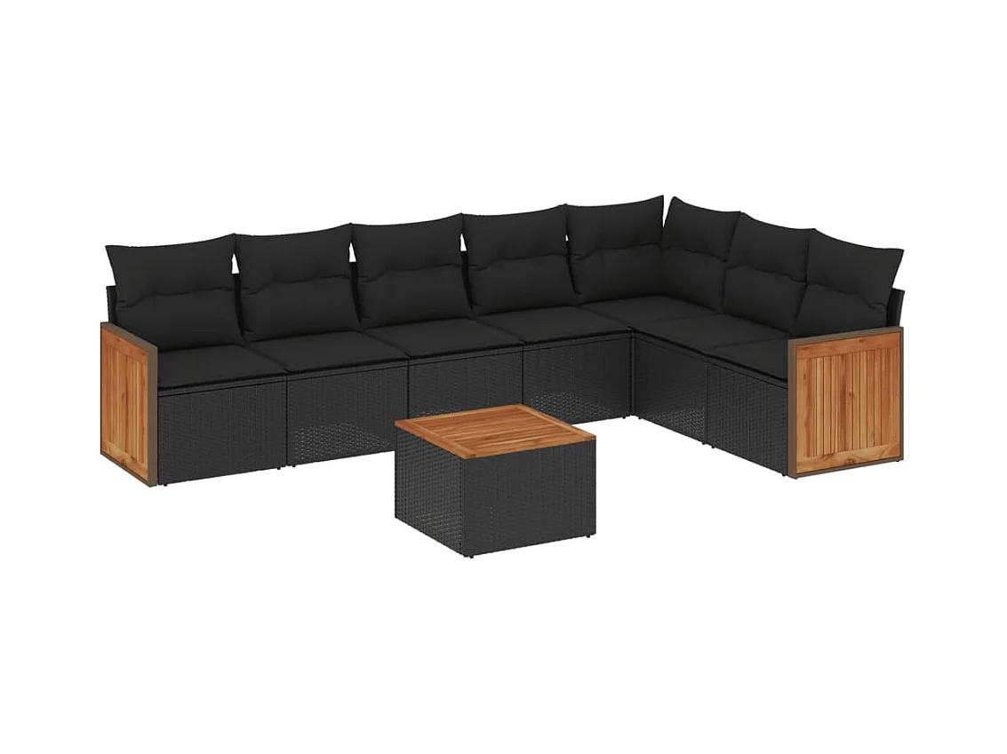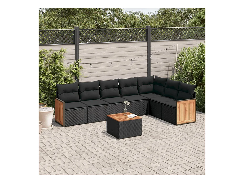 Salon de jardin 8 pcs avec coussins noir résine tressée