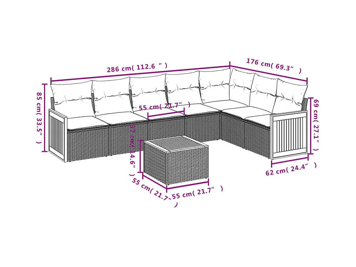 Salon de jardin 7 pcs avec coussins noir résine tressée