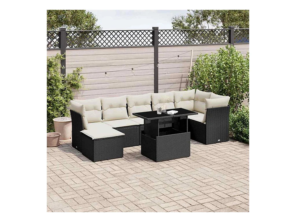 Salon de jardin 8 pcs avec coussins Résine tressée Noir