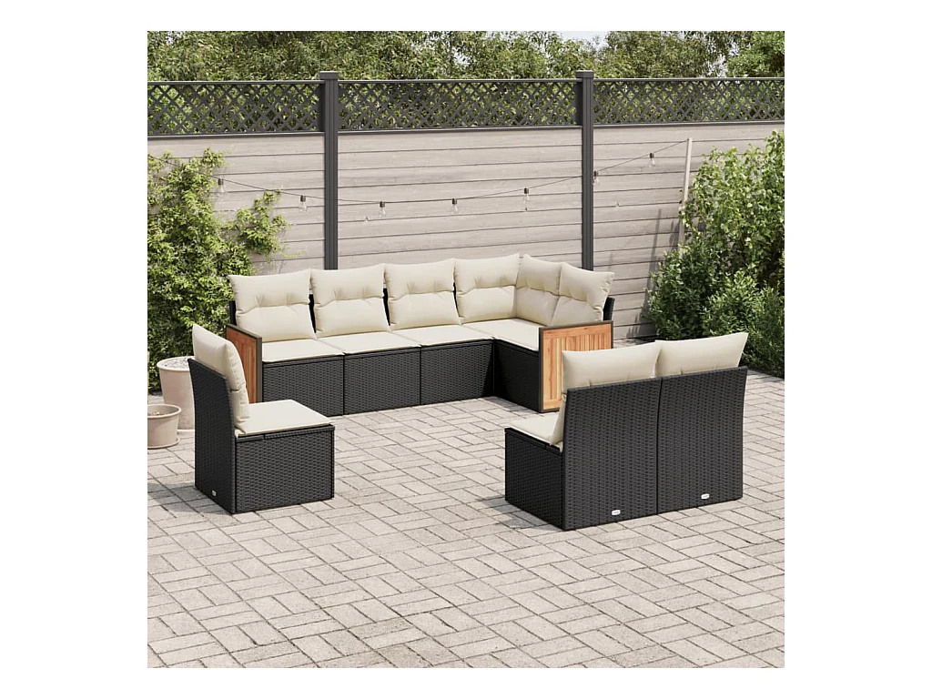 Salon de jardin 8 pcs avec coussins noir résine tressée
