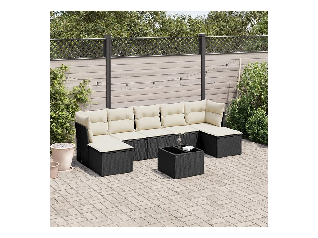 Salon de jardin 8 pcs avec coussins noir résine tressée
