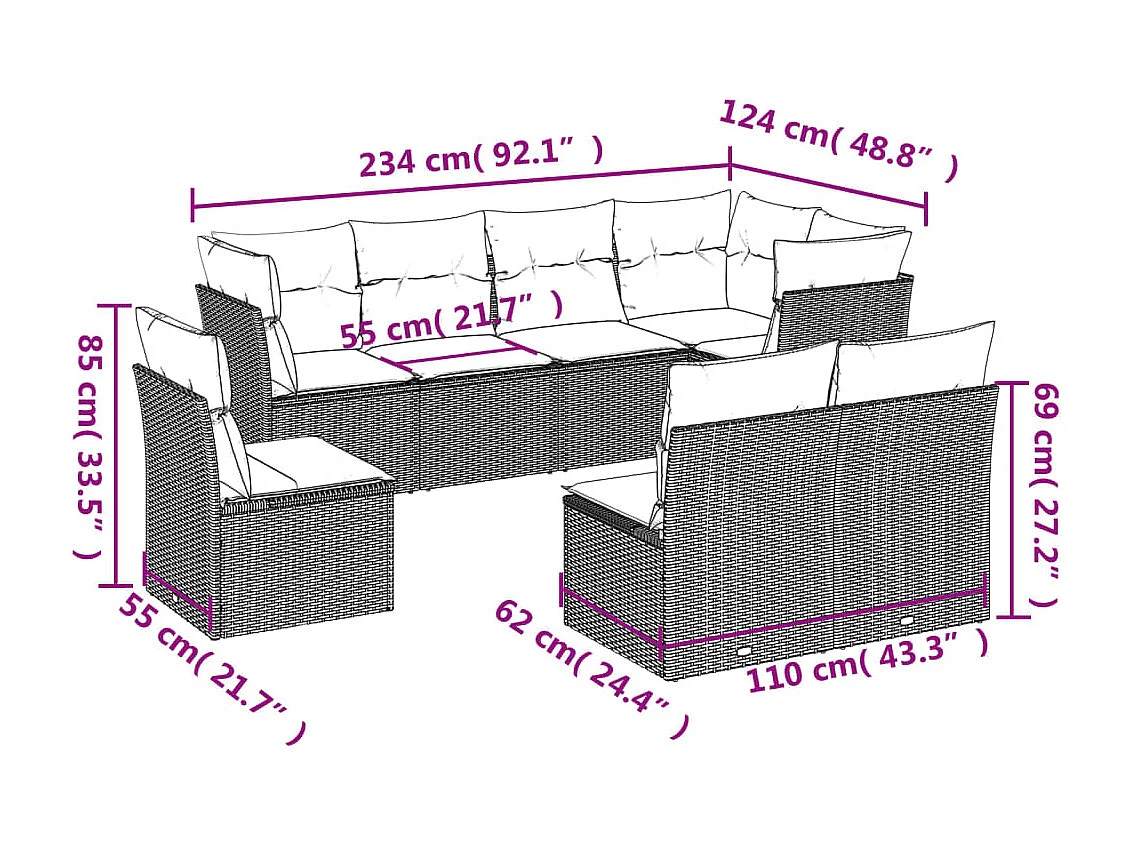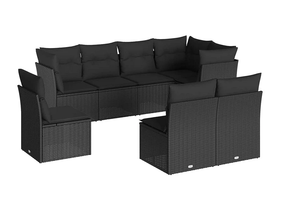 Salon de jardin 8 pcs avec coussins noir résine tressée