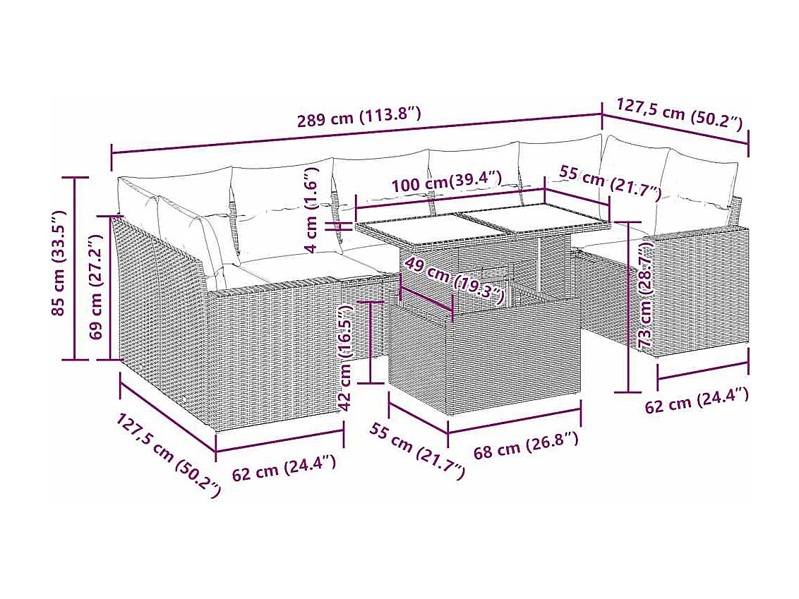 Salon complet de jardin Canapé 2 places et 2 fauteuils