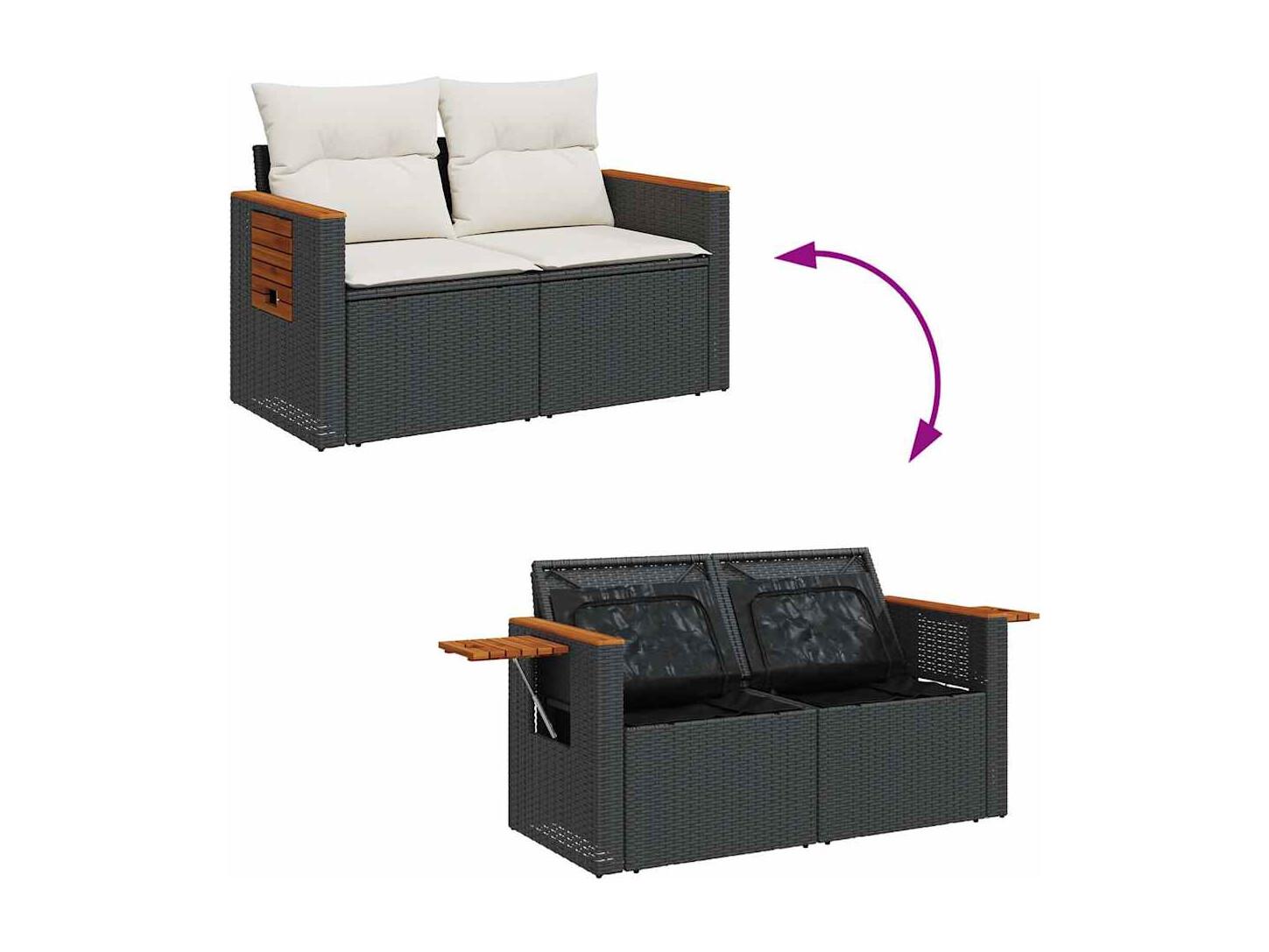 Salon de jardin avec coussins 8 pcs noir résine tressée acacia