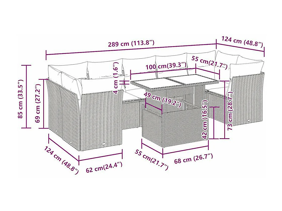 Salon de jardin 8 pcs avec coussins noir résine tressée