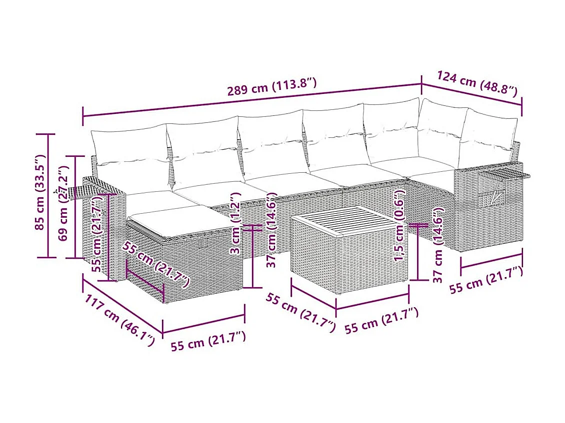 Salon complet de jardin Canapé 2 places et 2 fauteuils