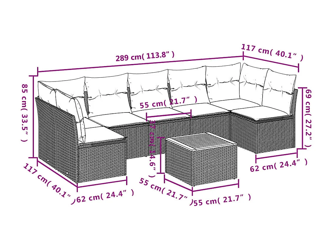Salon de jardin 8 pcs avec coussins noir résine tressée