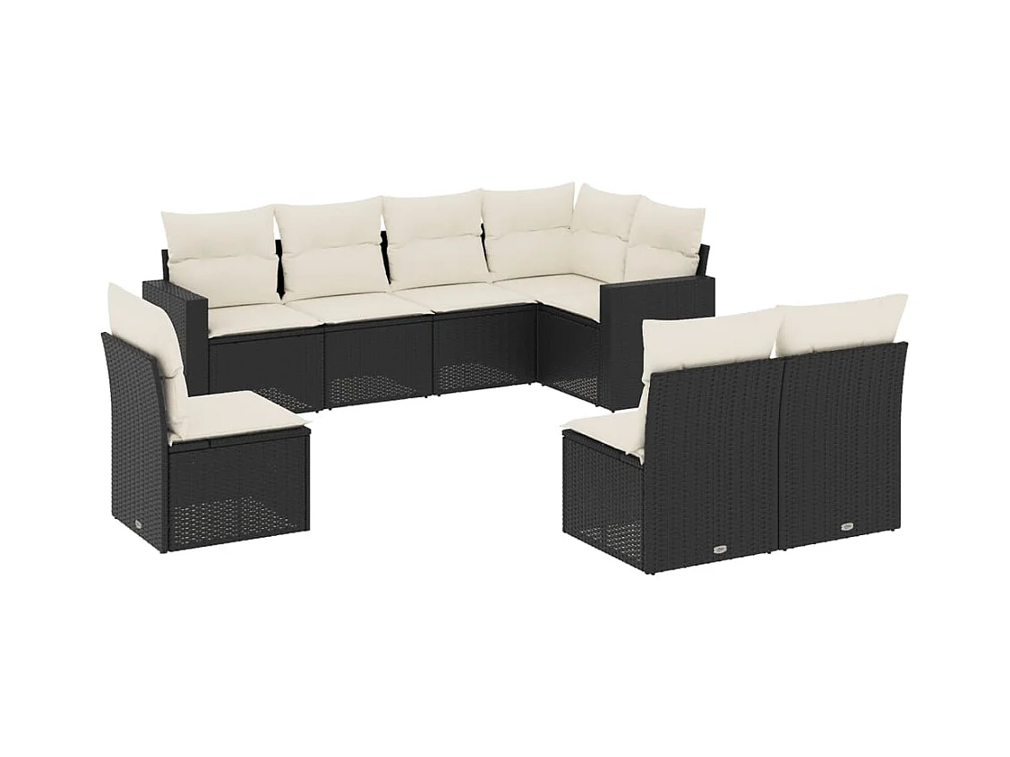 Salon de jardin 8 pcs avec coussins noir résine tressée