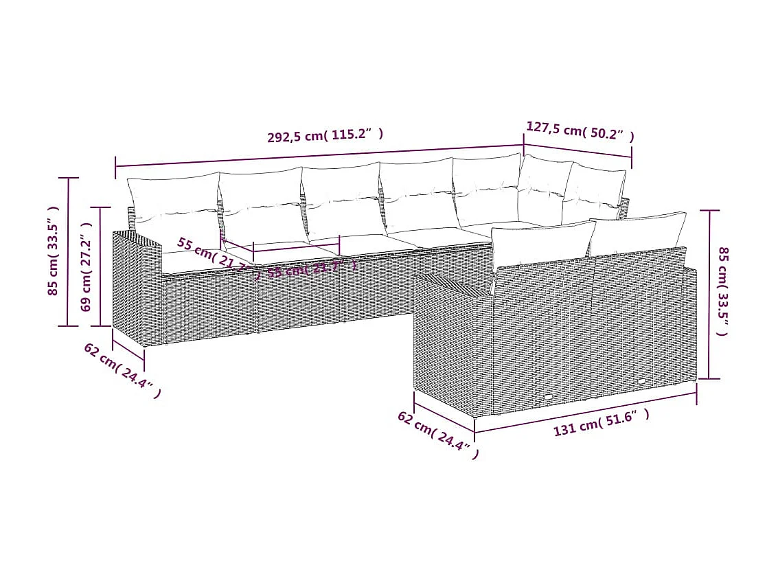 Salon de jardin 8 pcs avec coussins noir résine tressée