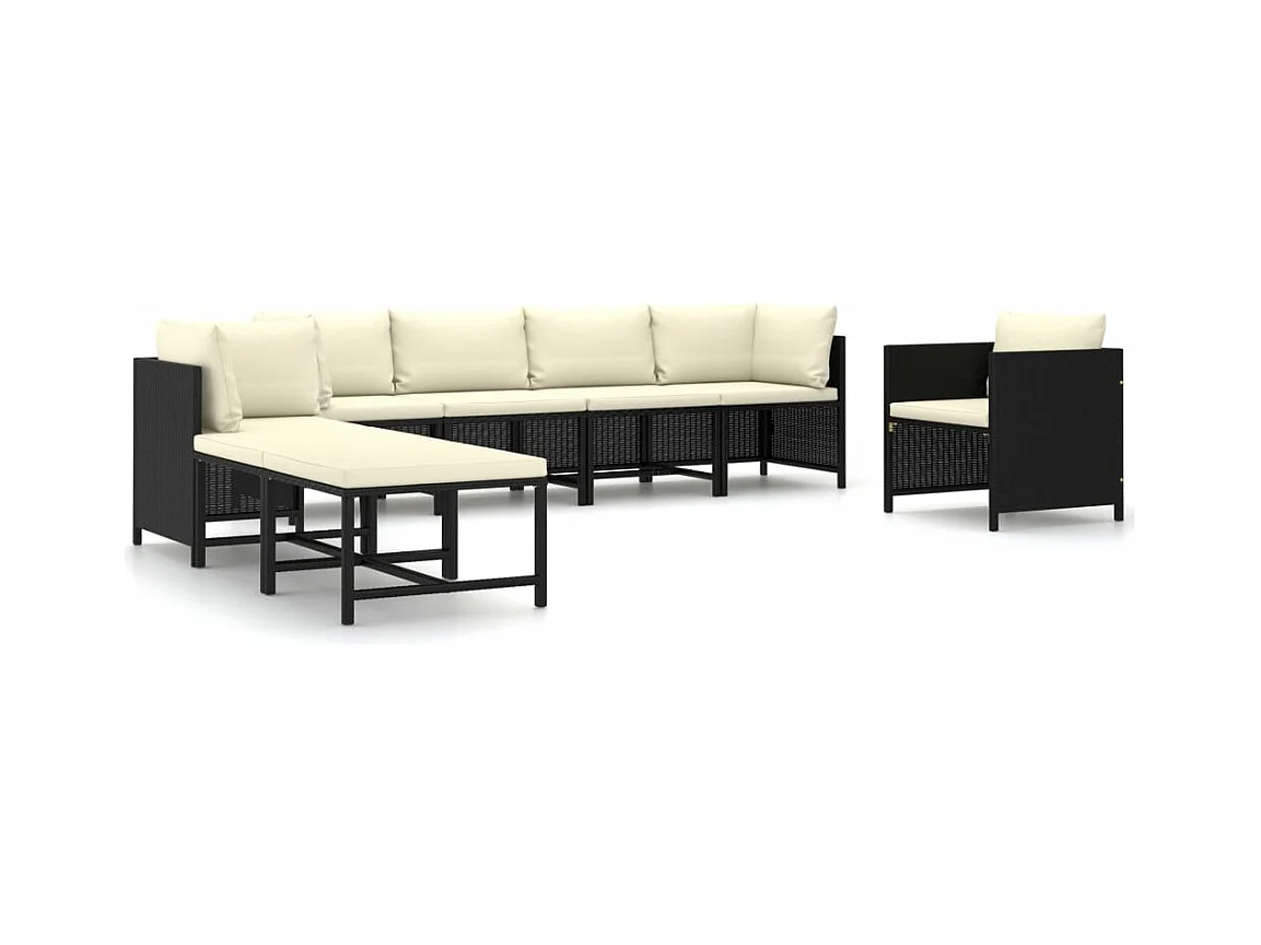 Salon de jardin 8 pcs avec coussins Résine tressée Noir