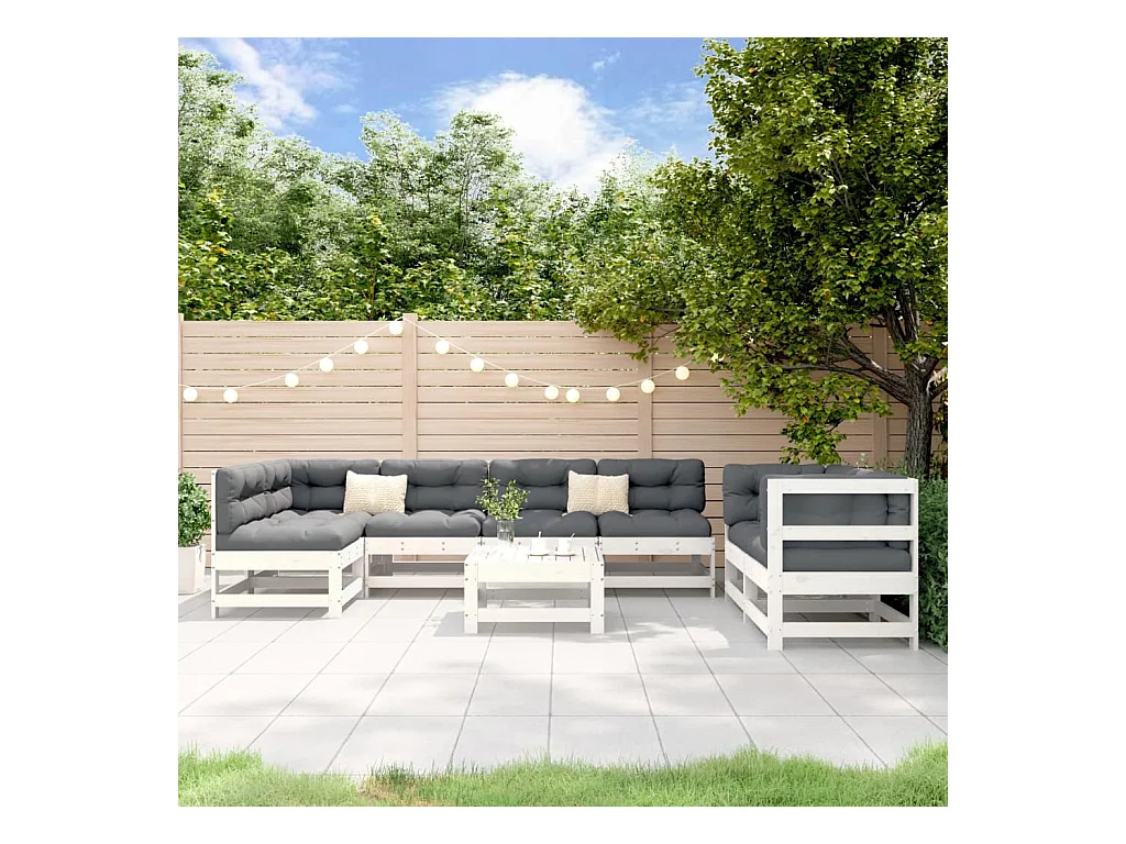 Salon de jardin 8 pcs Blanc Bois de pin massif