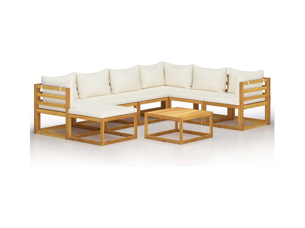 Salon de jardin 8 pièces avec coussin Crème Bois d'acacia solide