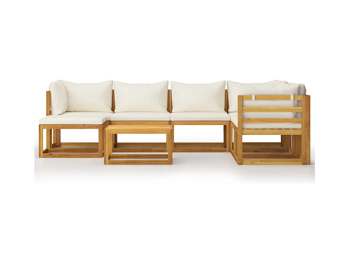 Salon de jardin 6 pièces avec coussin Crème Bois d'acacia solide