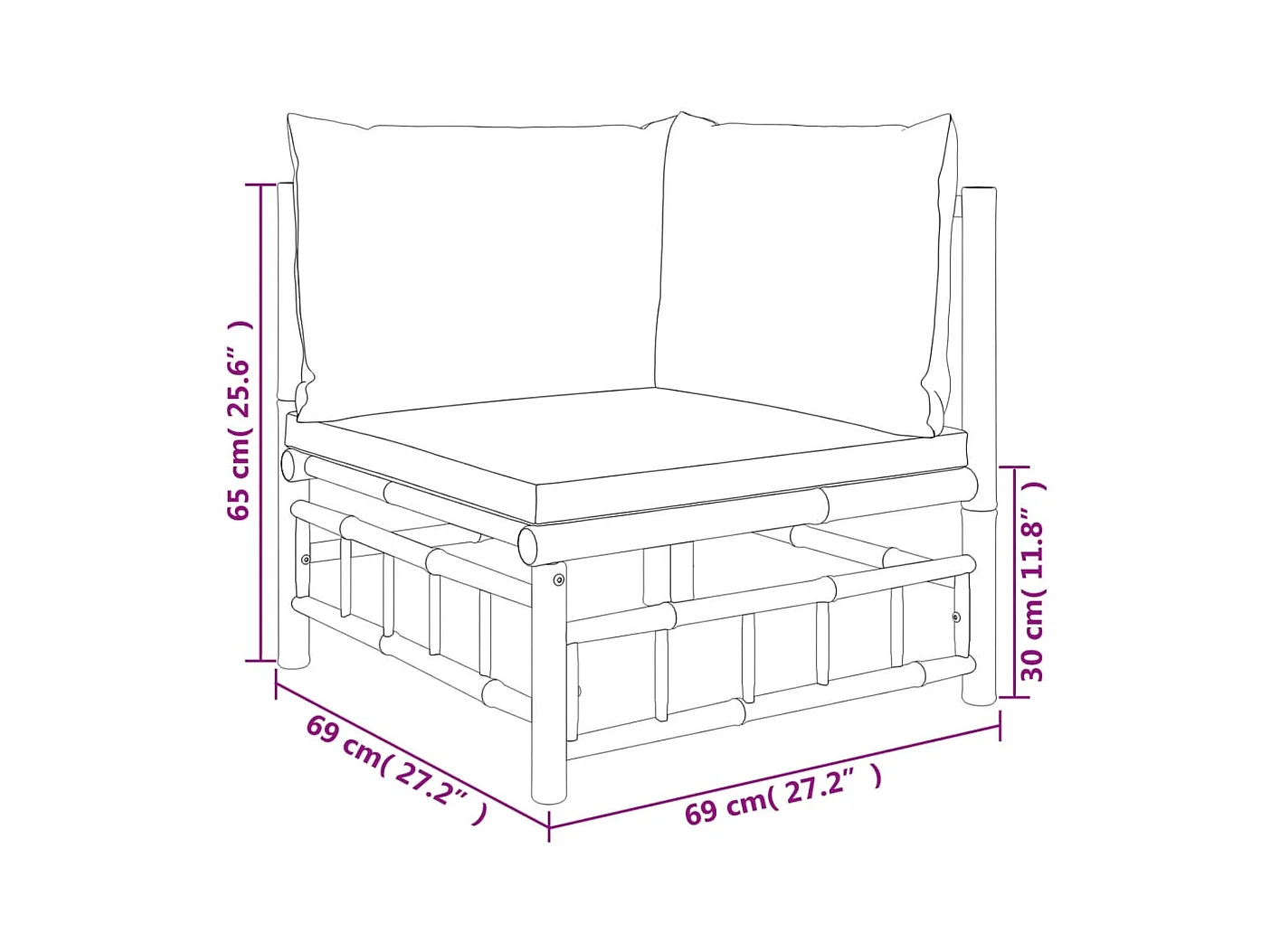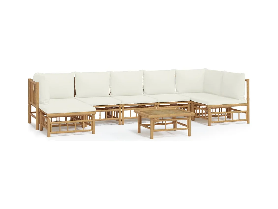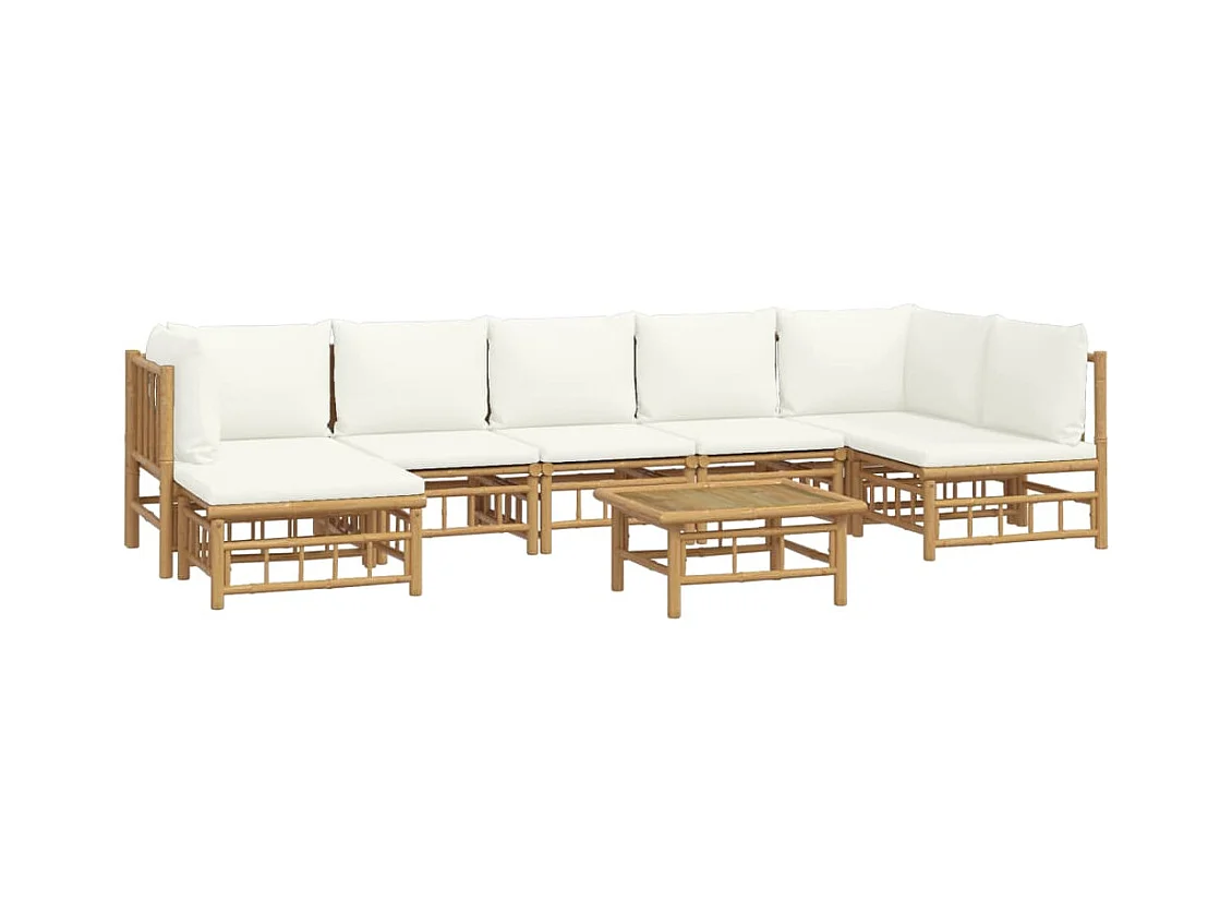 Salon de jardin 8 pièces avec coussins blanc crème bambou