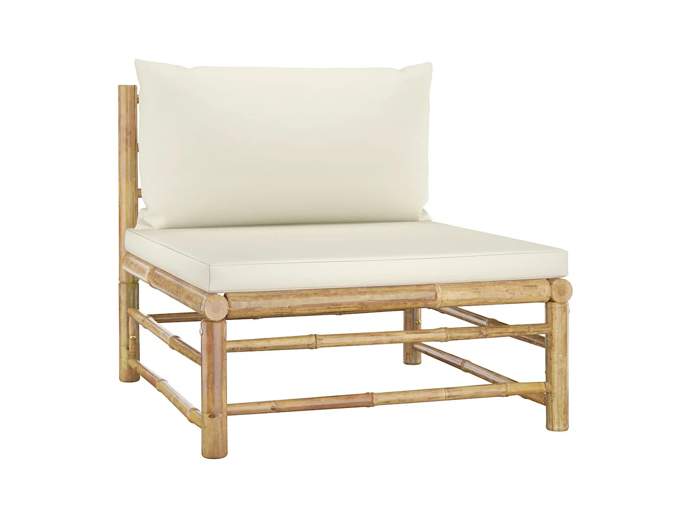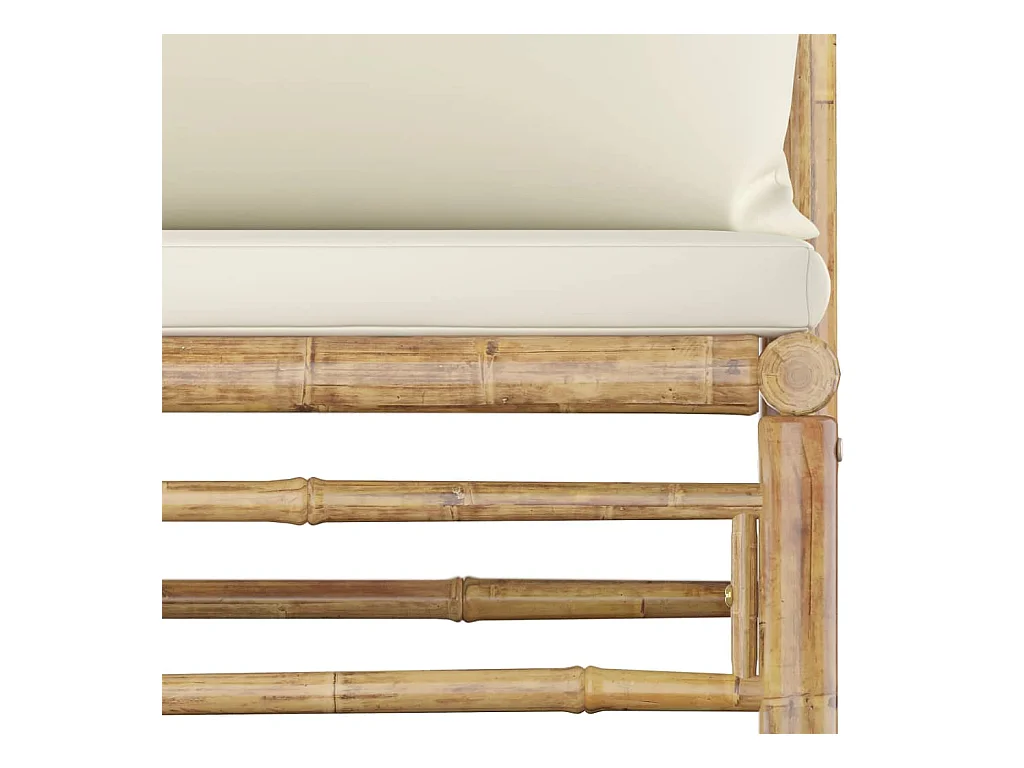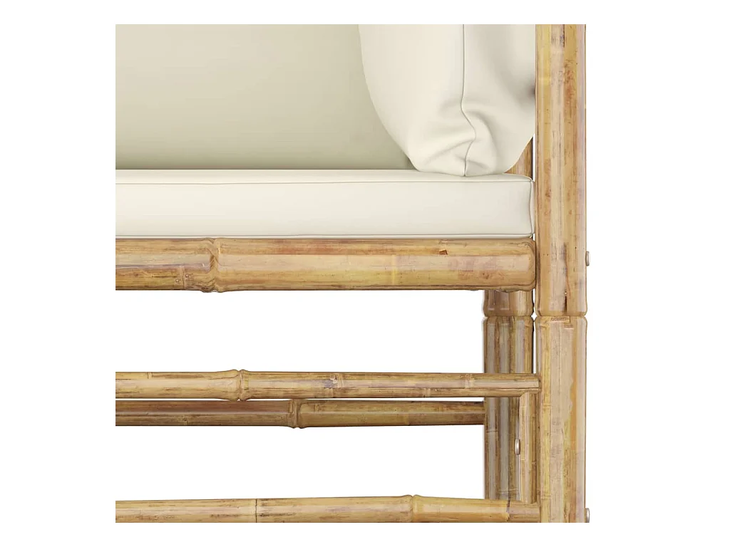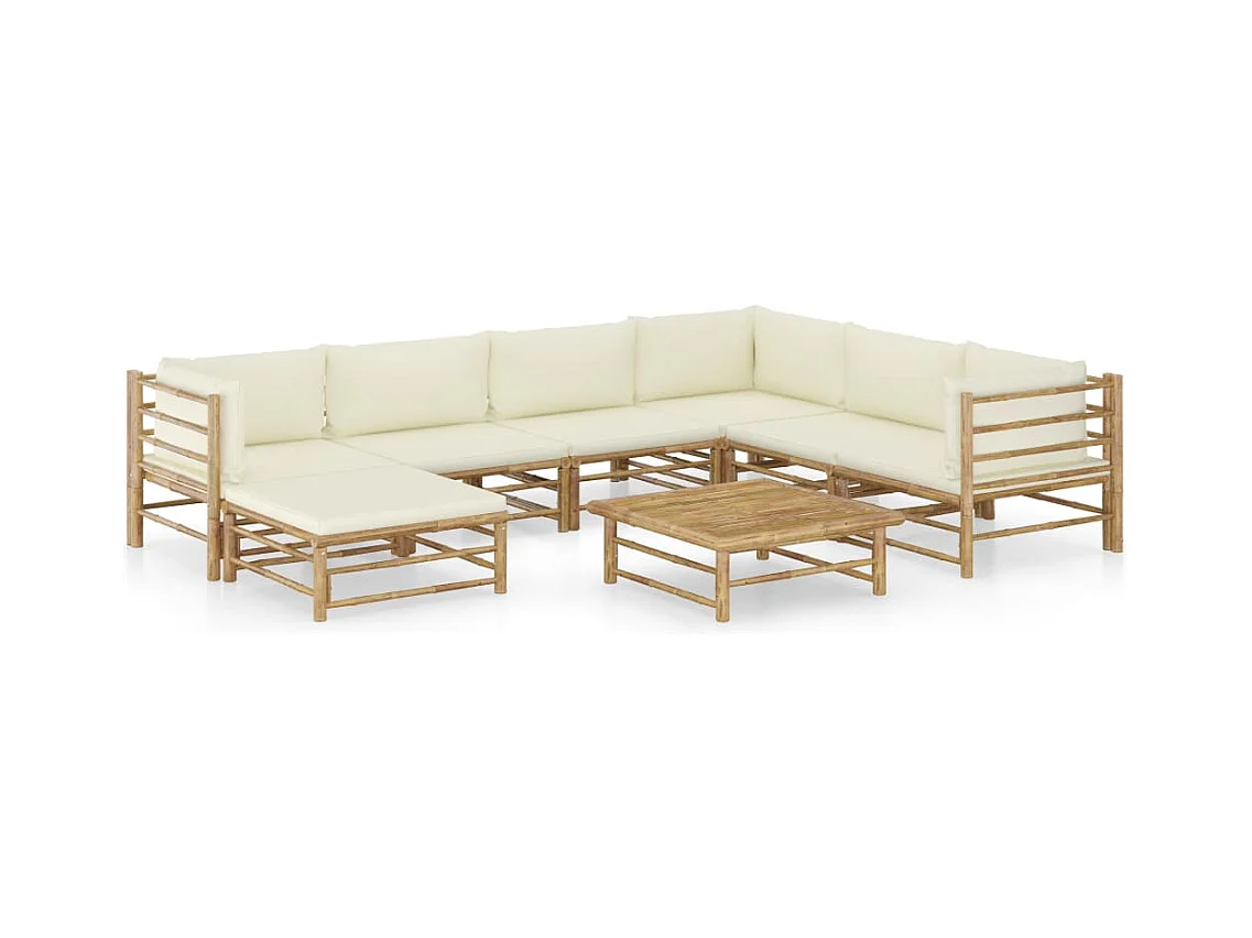 Salon de jardin 8 pièces avec coussins blanc crème Bambou