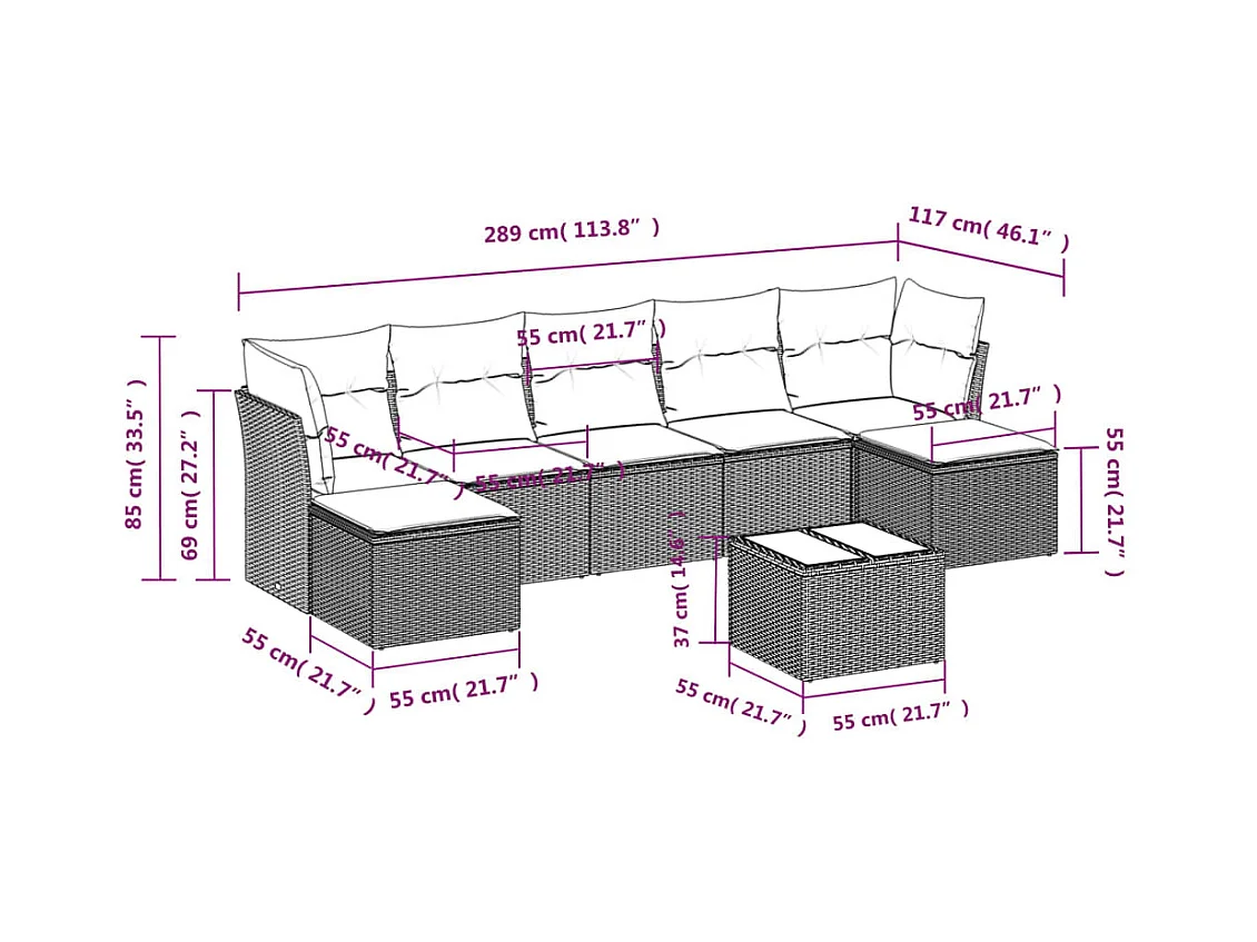 Salon de jardin avec coussins 7 pièces gris clair résine tressée