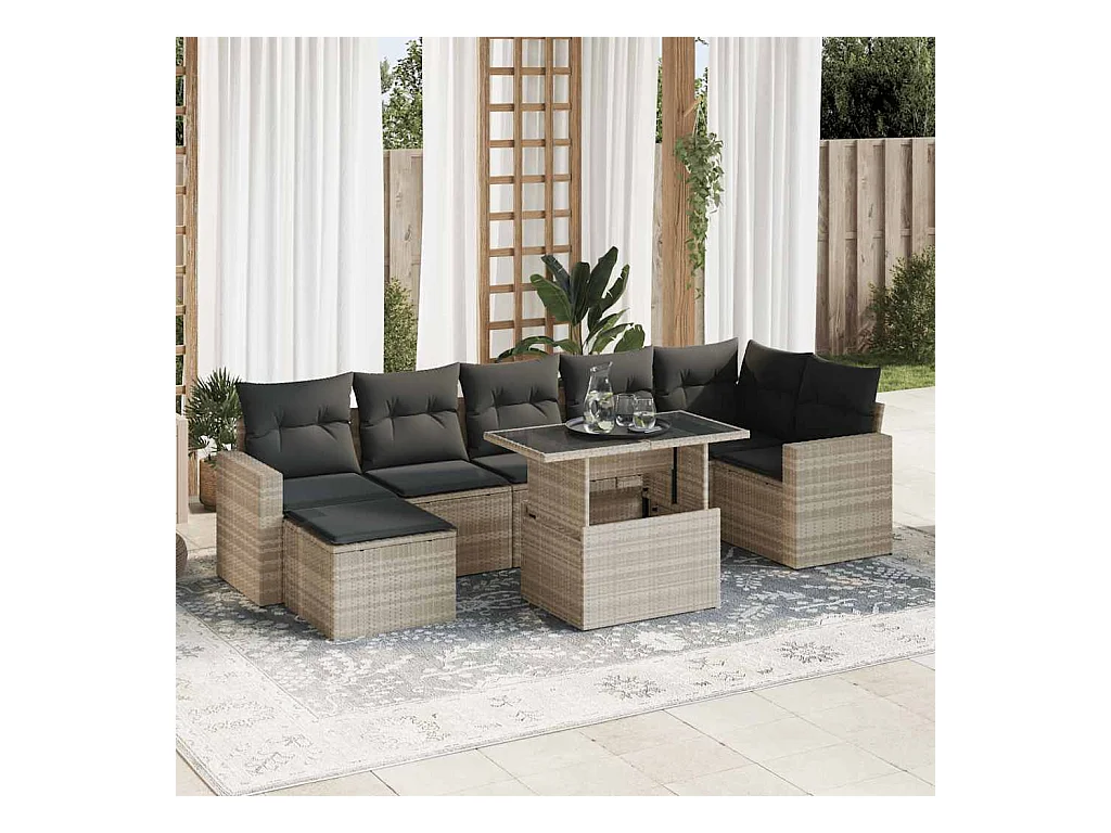 Salon de jardin 8 pièces avec coussins gris clair résine tressée