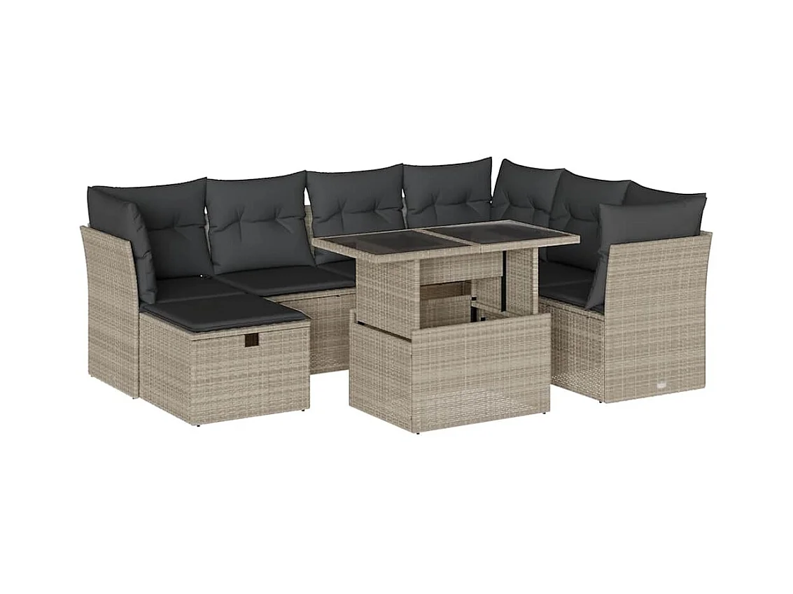 Salon de jardin avec coussins 7 pièces gris clair résine tressée