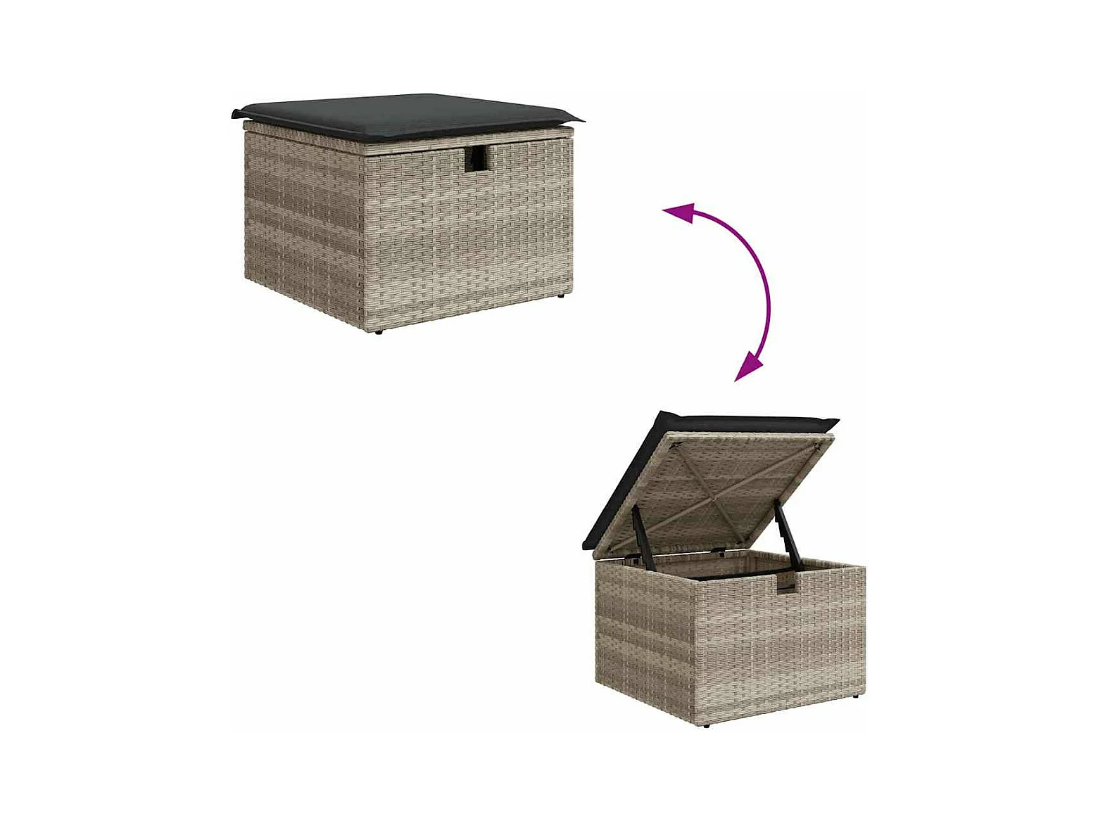 Salon de jardin 8 pièces avec coussins gris clair résine tressée