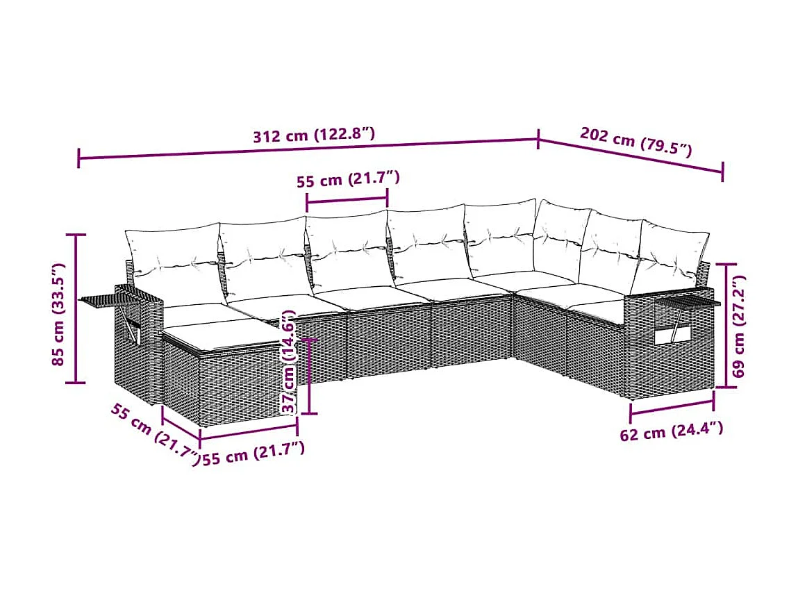 Salon de jardin 8 pièces avec coussins gris clair résine tressée