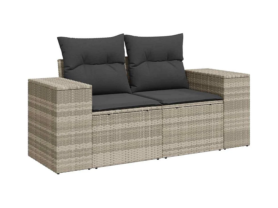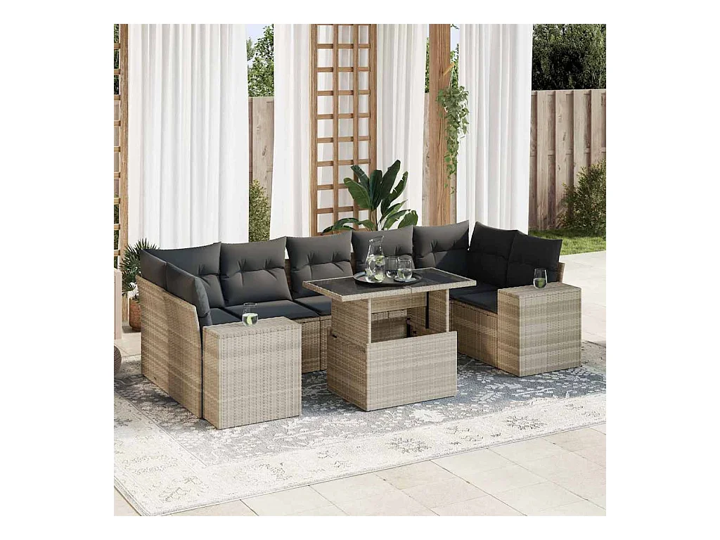 Salon de jardin 8 pièces avec coussins gris clair résine tressée