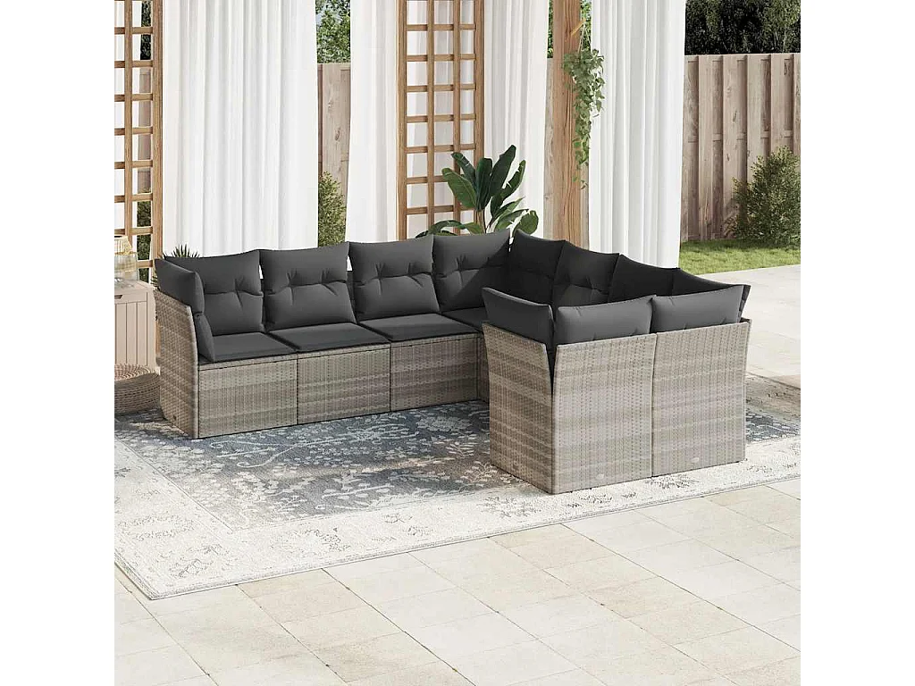 Salon de jardin 8 pièces avec coussins gris clair résine tressée