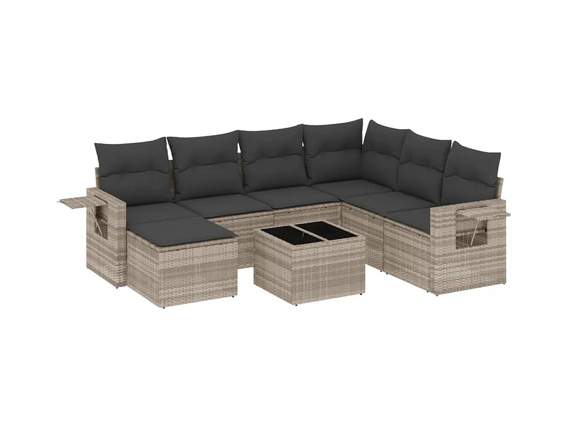 Salon de jardin 8 pièces avec coussins gris clair résine tressée