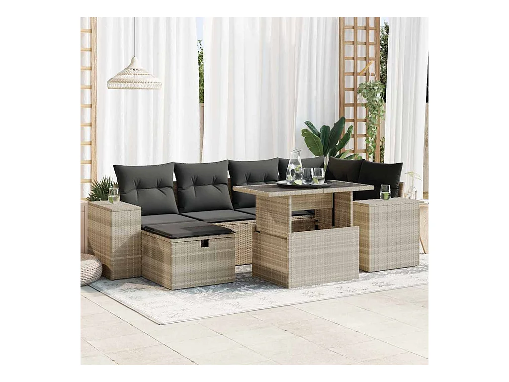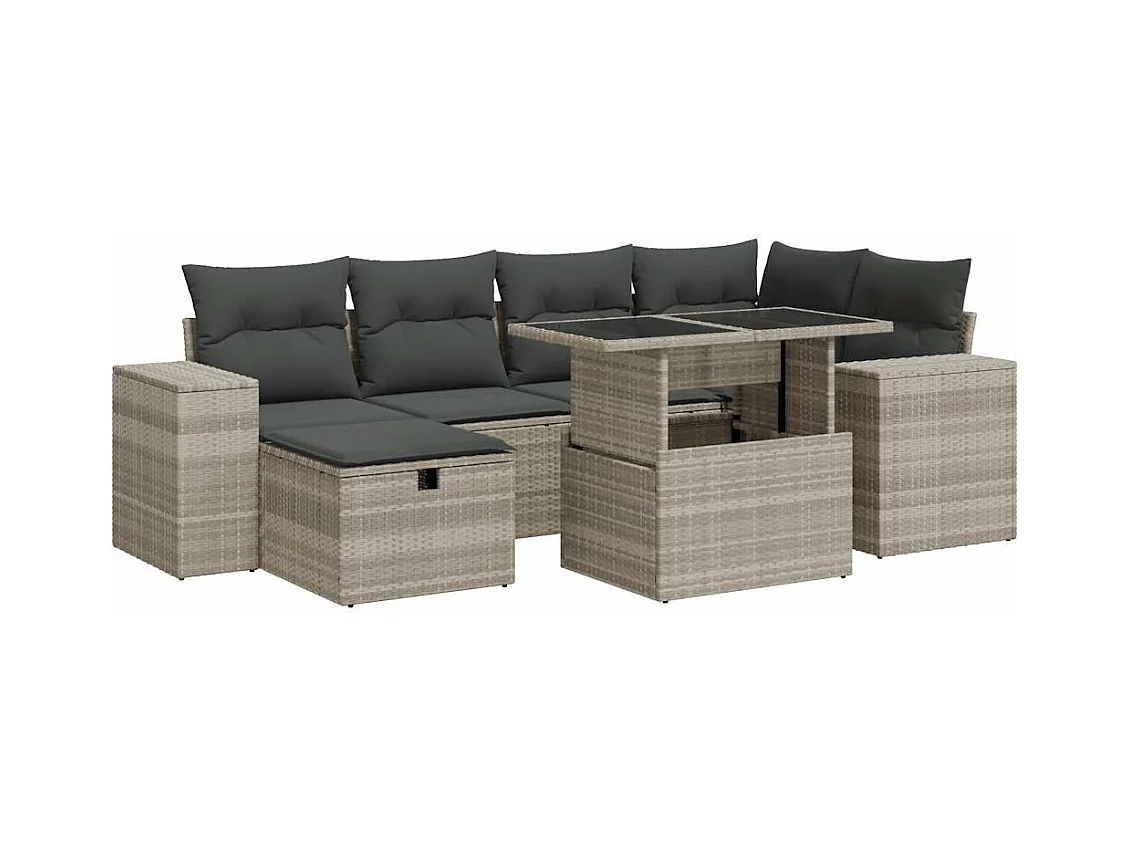 Salon de jardin avec coussins 7 pièces gris clair résine tressée