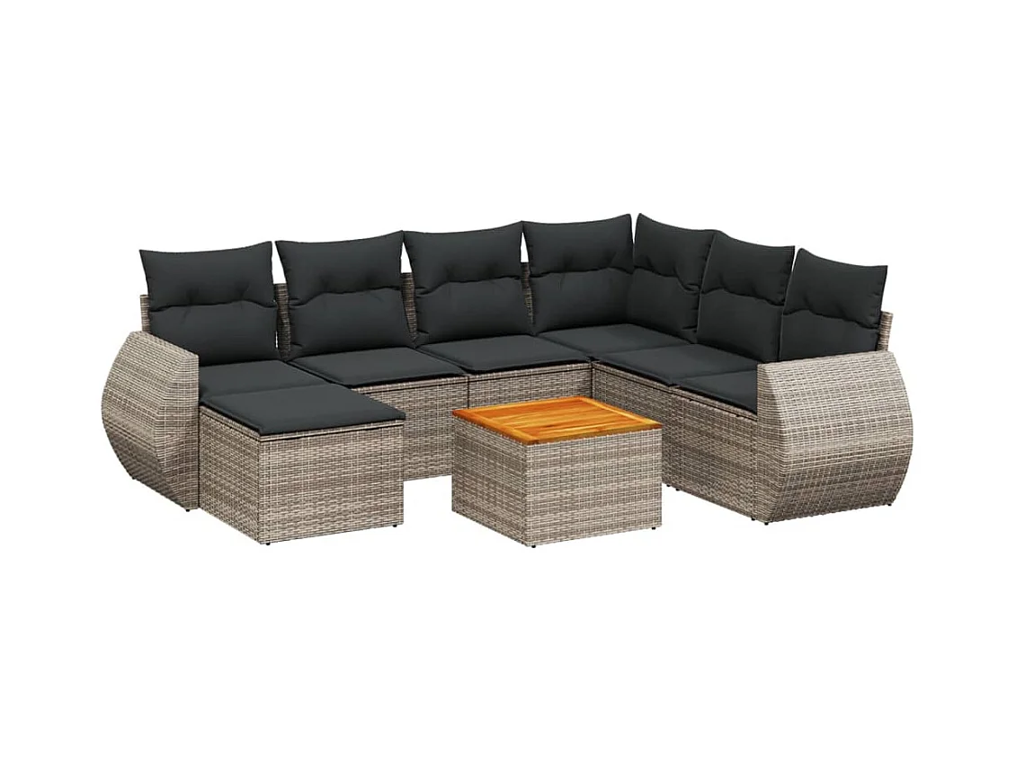 Salon de jardin 8 pièces avec coussins gris résine tressée