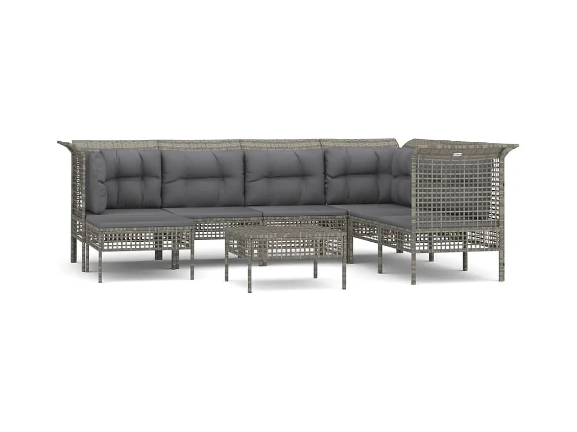 Salon de jardin avec coussins 7 pièces gris clair résine tressée