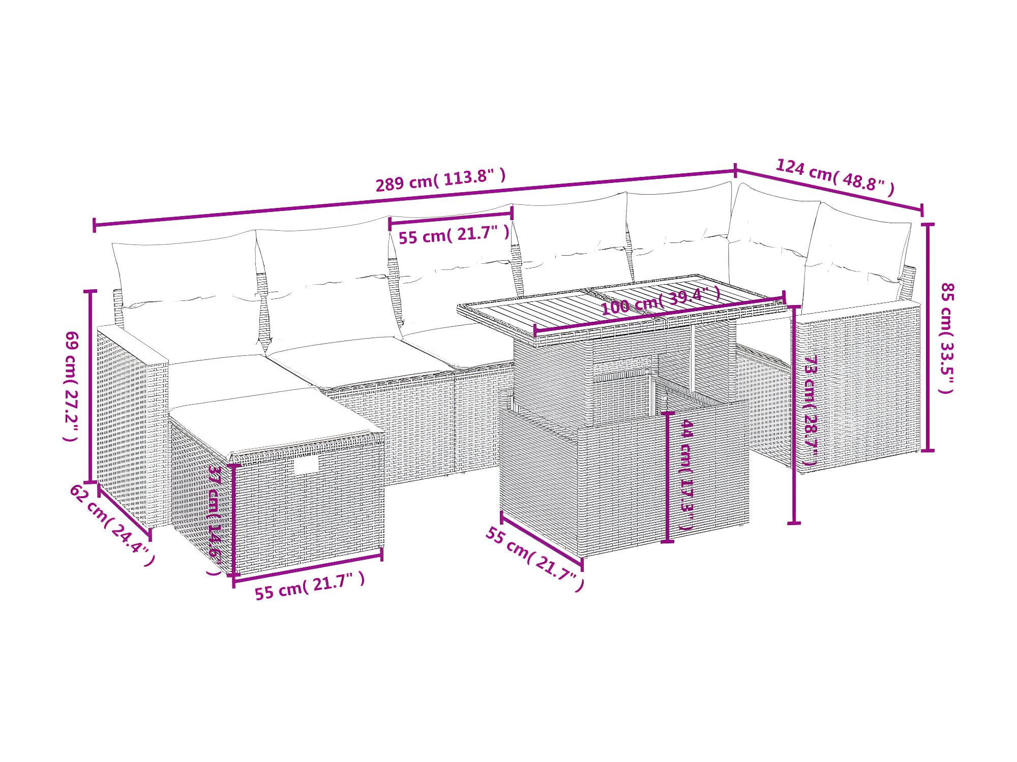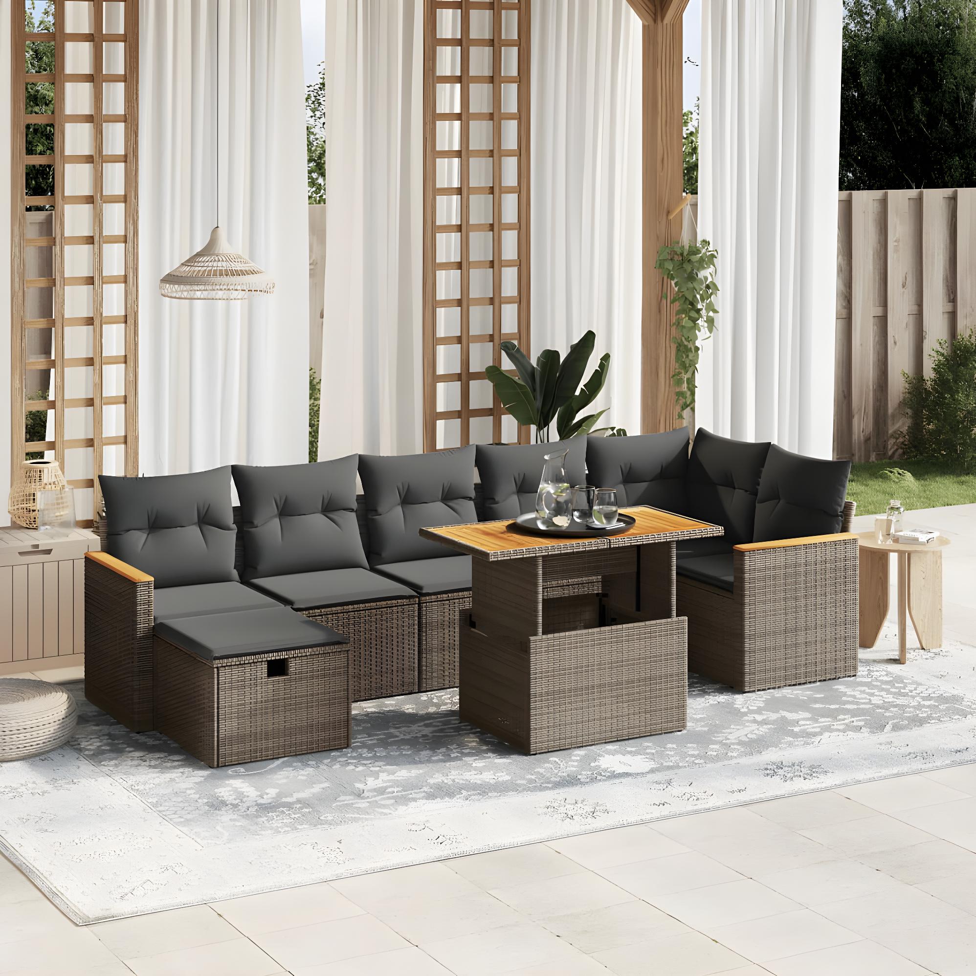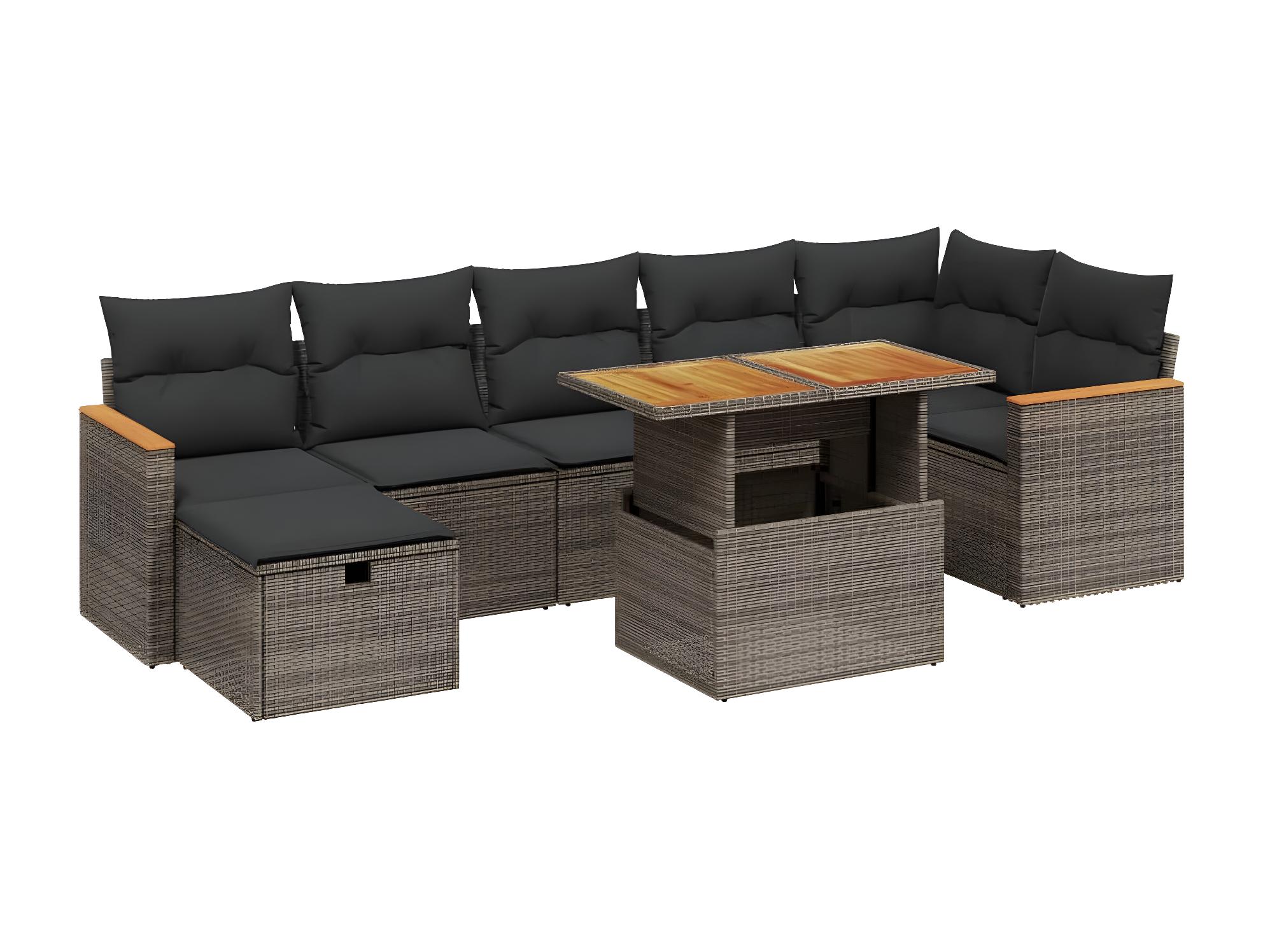Salon de jardin 8 pièces avec coussins gris résine tressée