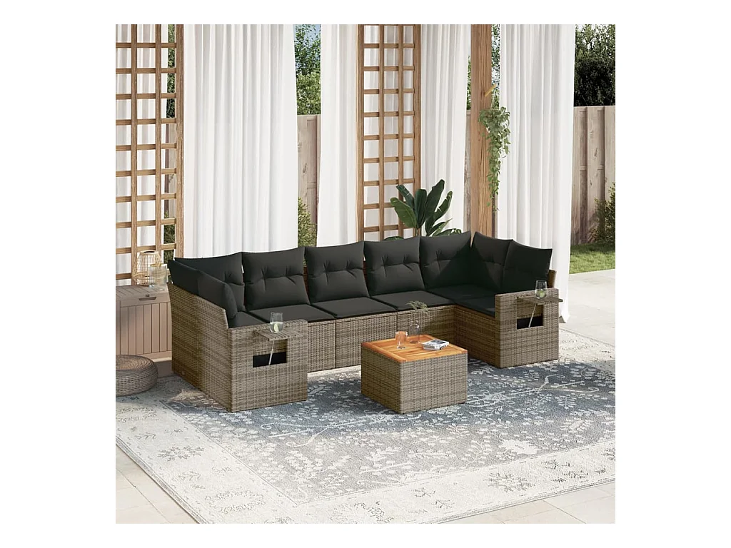 Salon de jardin avec coussins 8 pièces gris résine tressée acacia