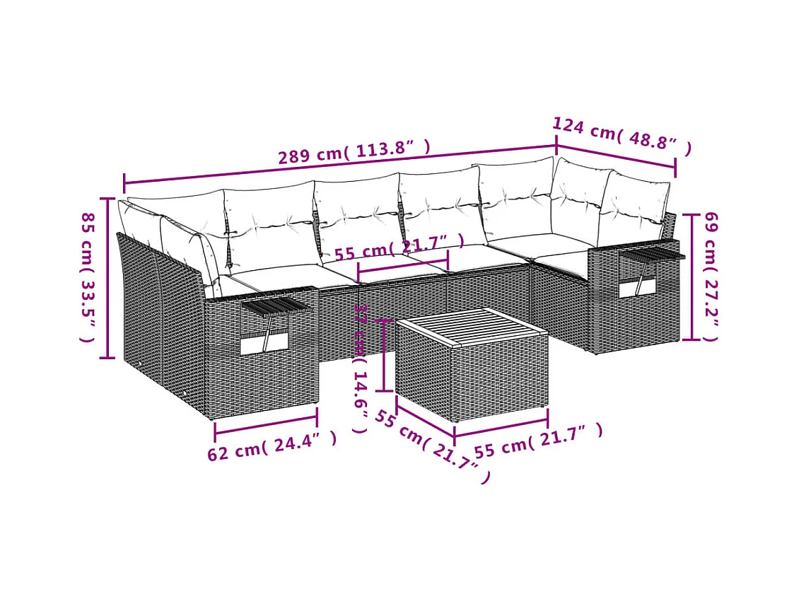 Salon de jardin 8 pièces avec coussins gris résine tressée