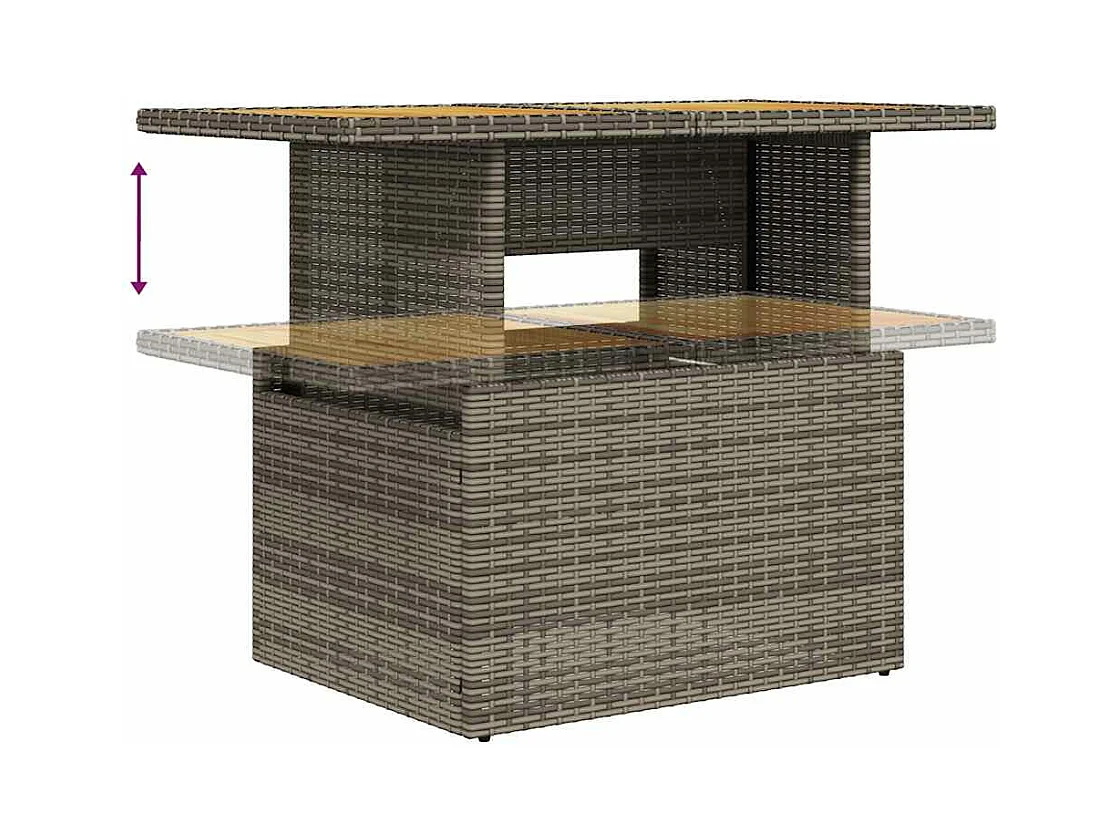 Salon de jardin avec coussins 7 pièces gris résine tressée acacia