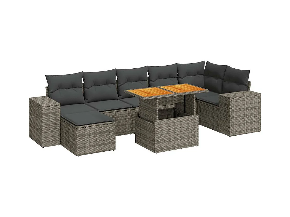 Salon de jardin avec coussins 8 pièces gris résine tressée acacia