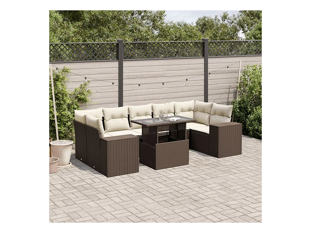 Salon de jardin 8 pièces avec coussins marron résine tressée