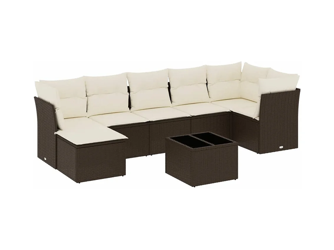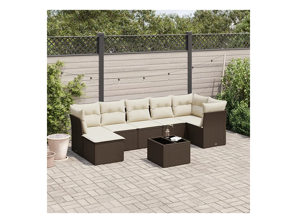 Salon de jardin 8 pièces avec coussins marron résine tressée