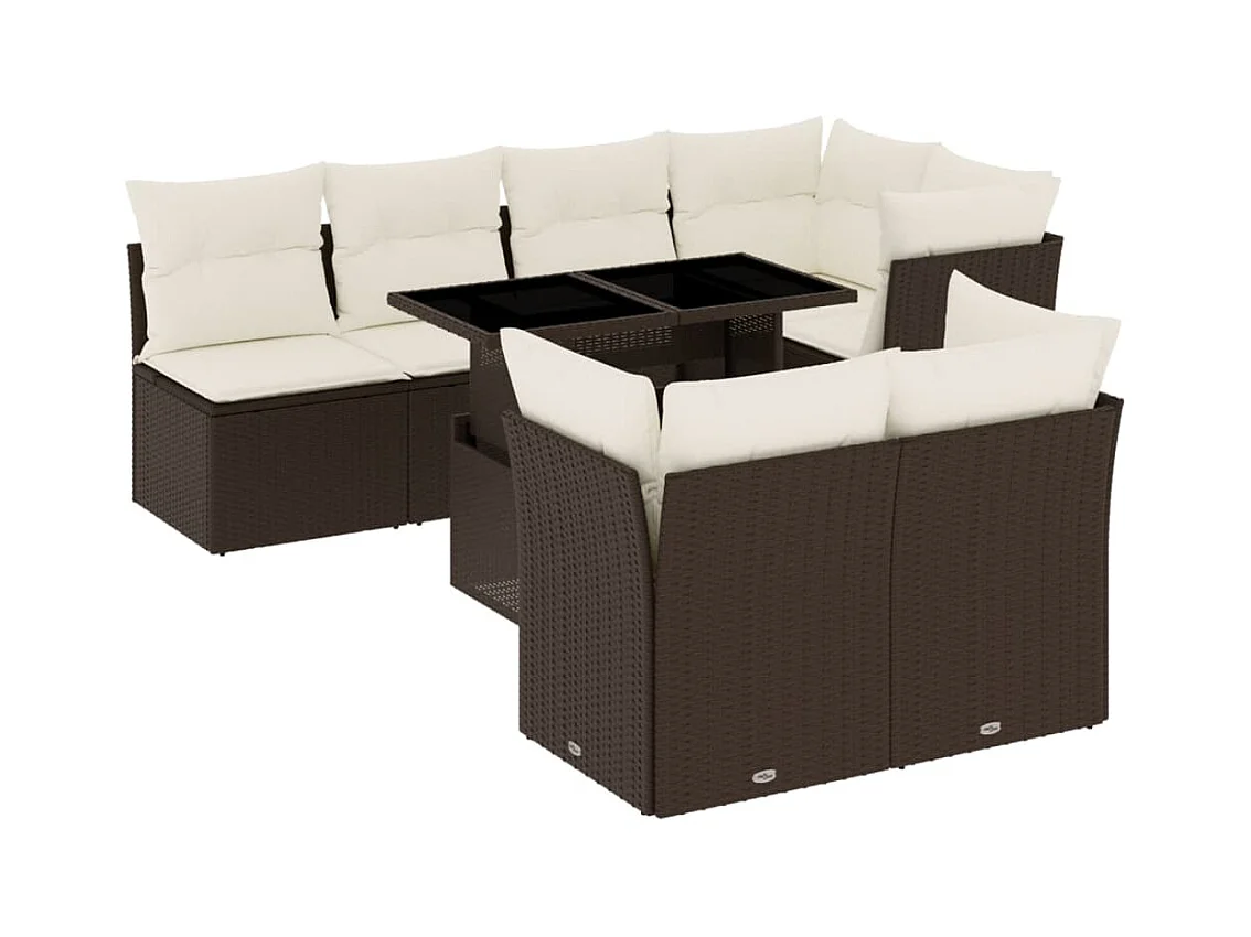 Salon de jardin 8 pièces avec coussins marron résine tressée