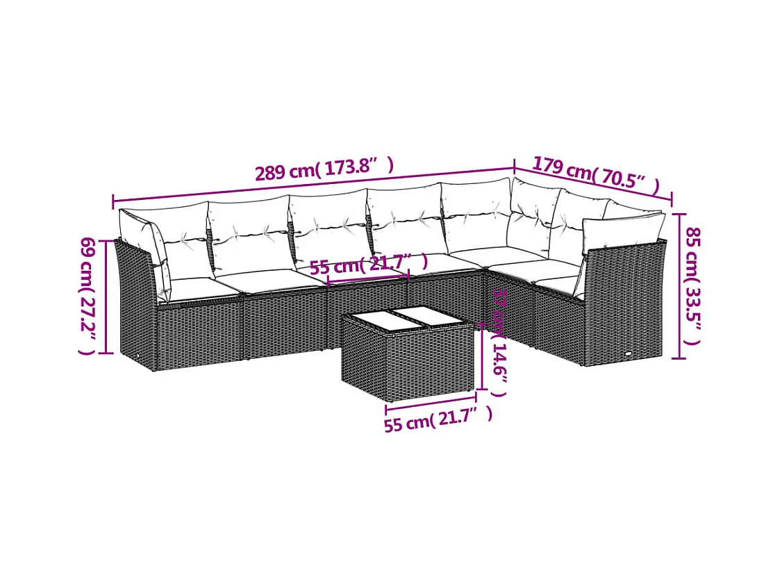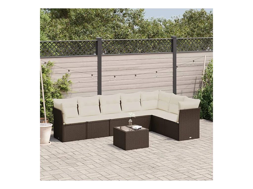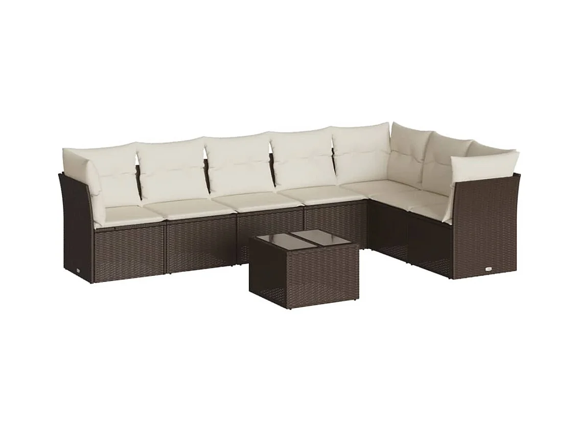 Salon de jardin 8 pièces avec coussins marron résine tressée