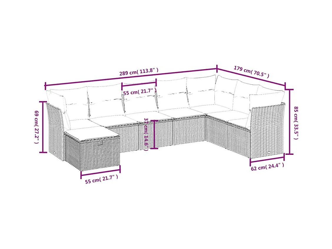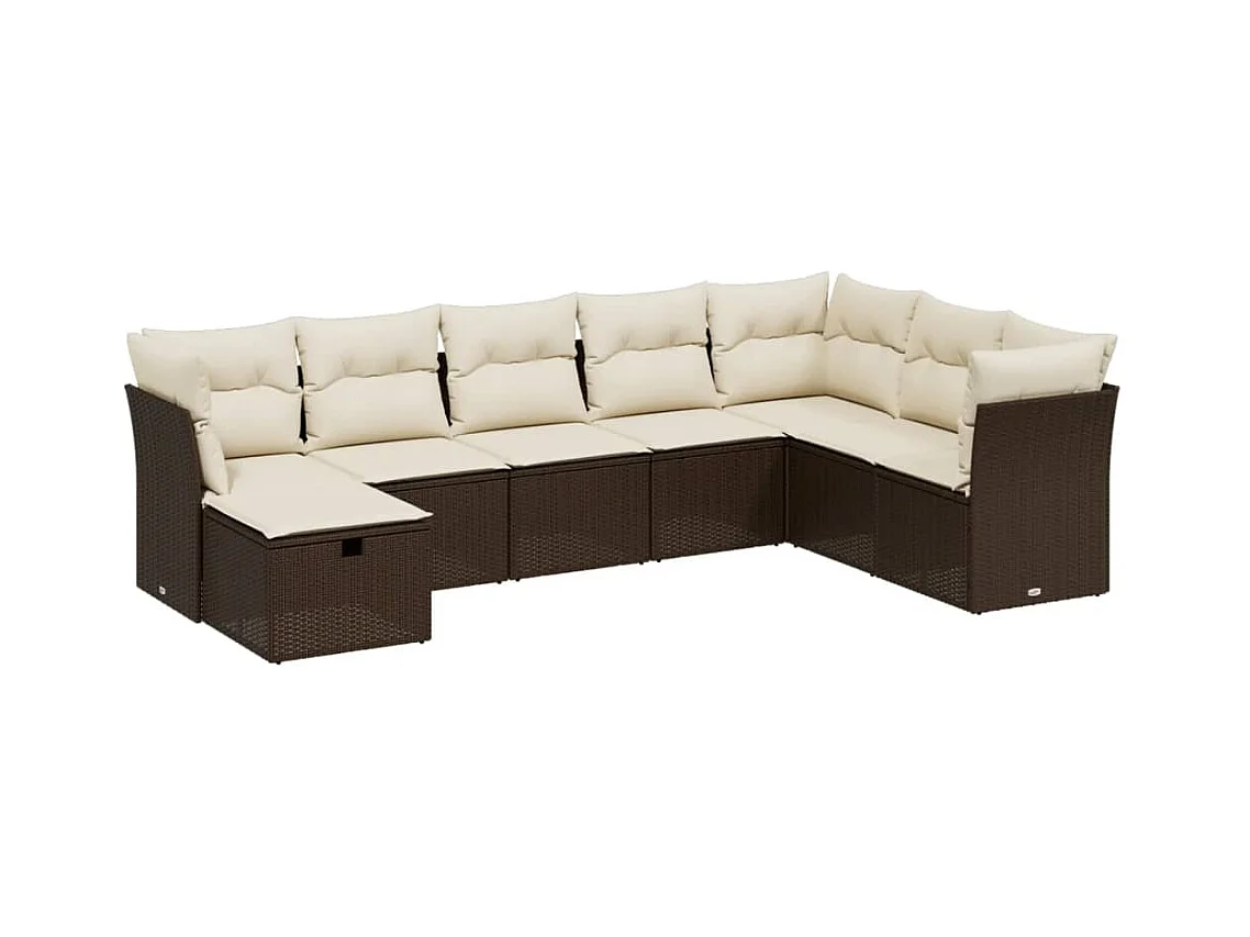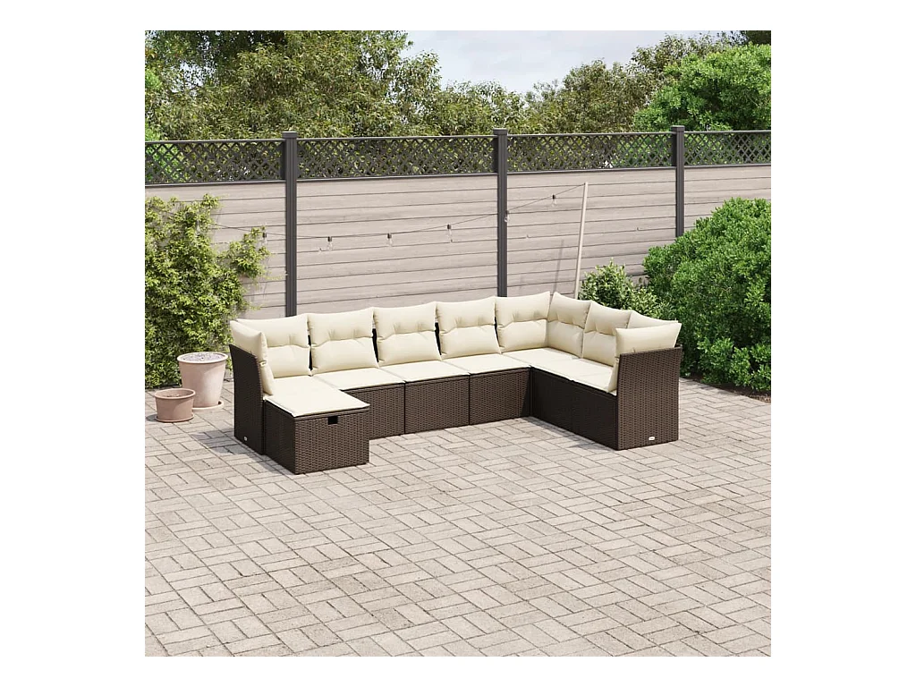 Salon de jardin 8 pièces avec coussins marron résine tressée