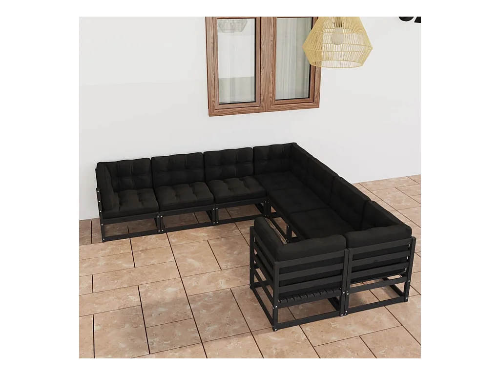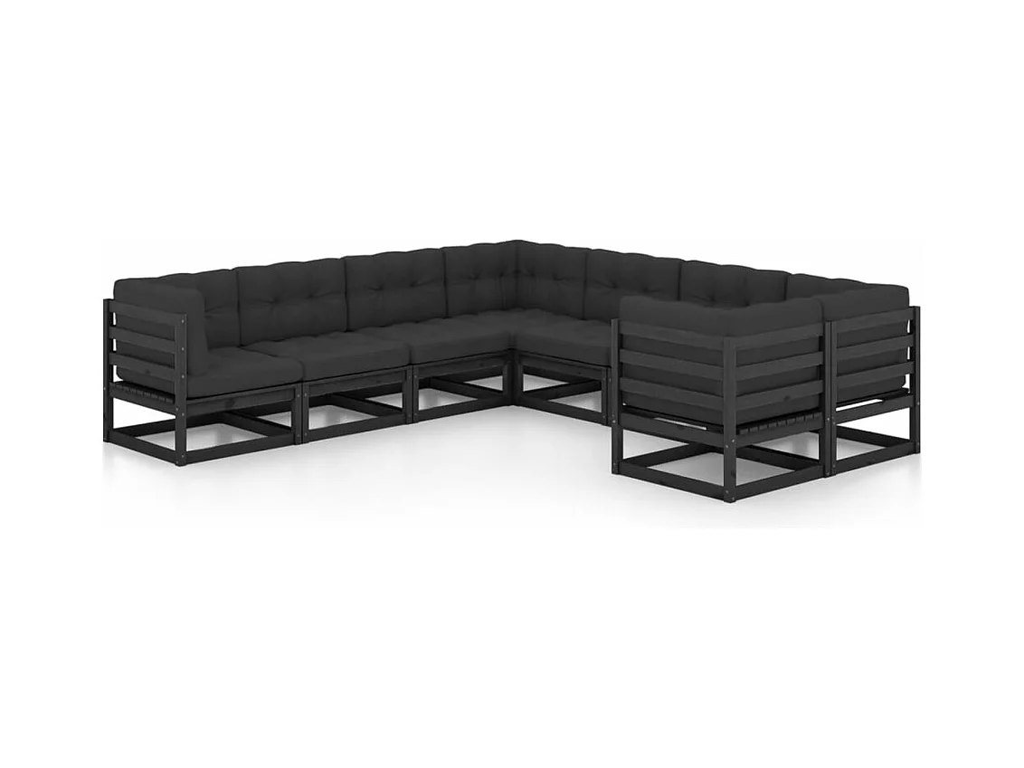 Salon de jardin 8 pièces avec coussins Noir Bois de pin massif
