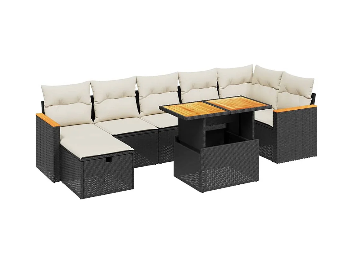 Salon de jardin 8 pièces avec coussins noir résine tressée