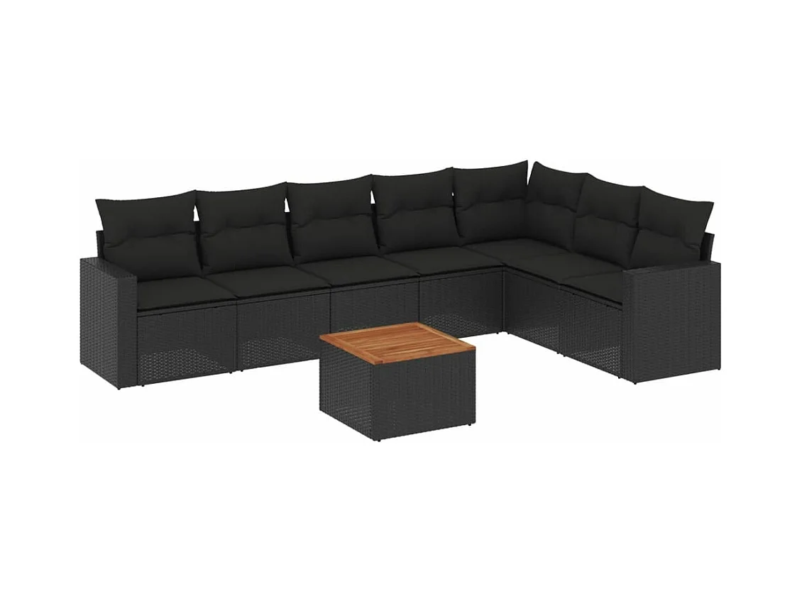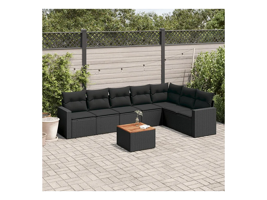 Salon de jardin 8 pièces avec coussins noir résine tressée