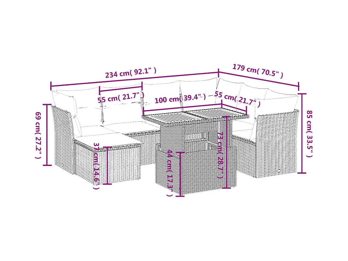 Salon de jardin 8 pièces avec coussins noir résine tressée
