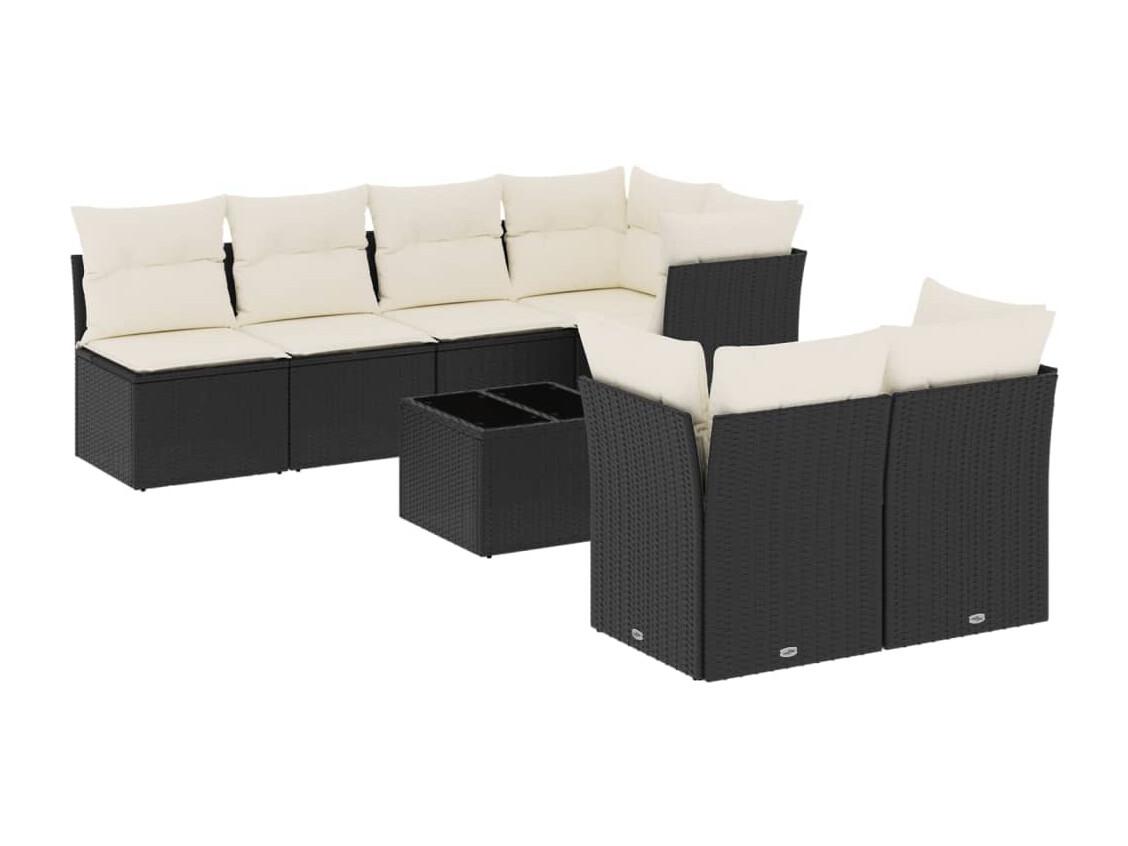 Salon de jardin 7 pcs avec coussins noir résine tressée