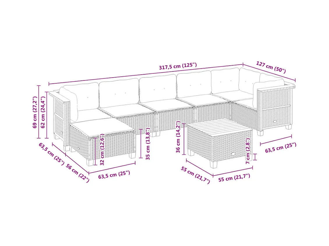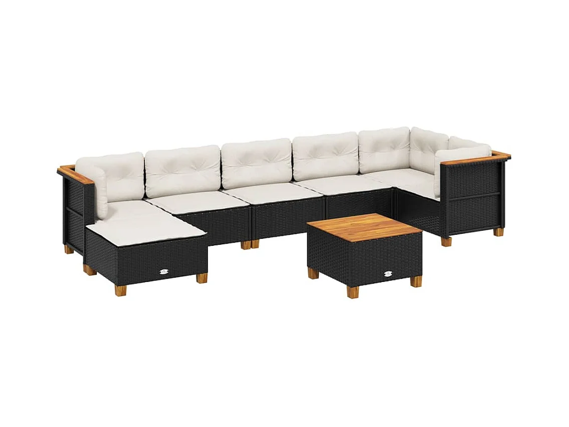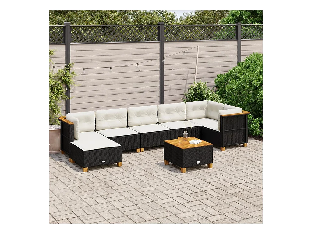 Salon de jardin 8 pièces avec coussins noir résine tressée