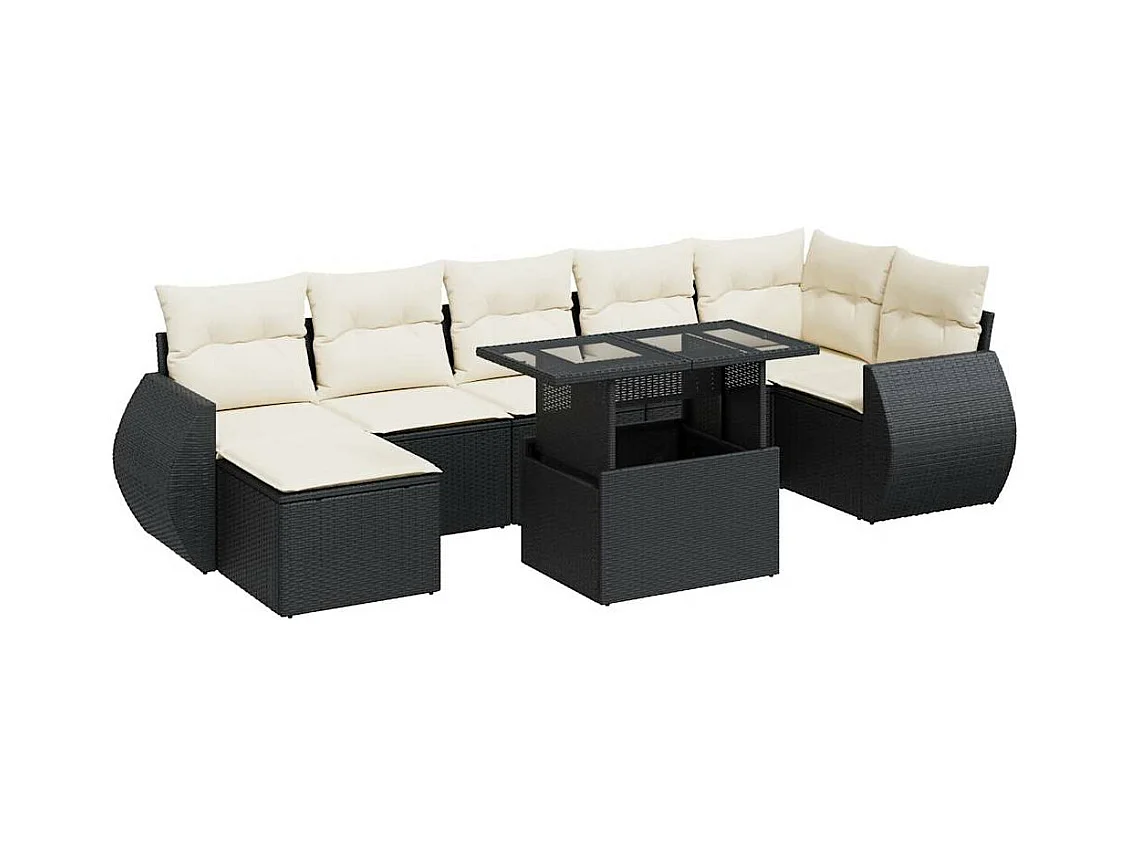 Salon de jardin 8 pièces avec coussins noir résine tressée