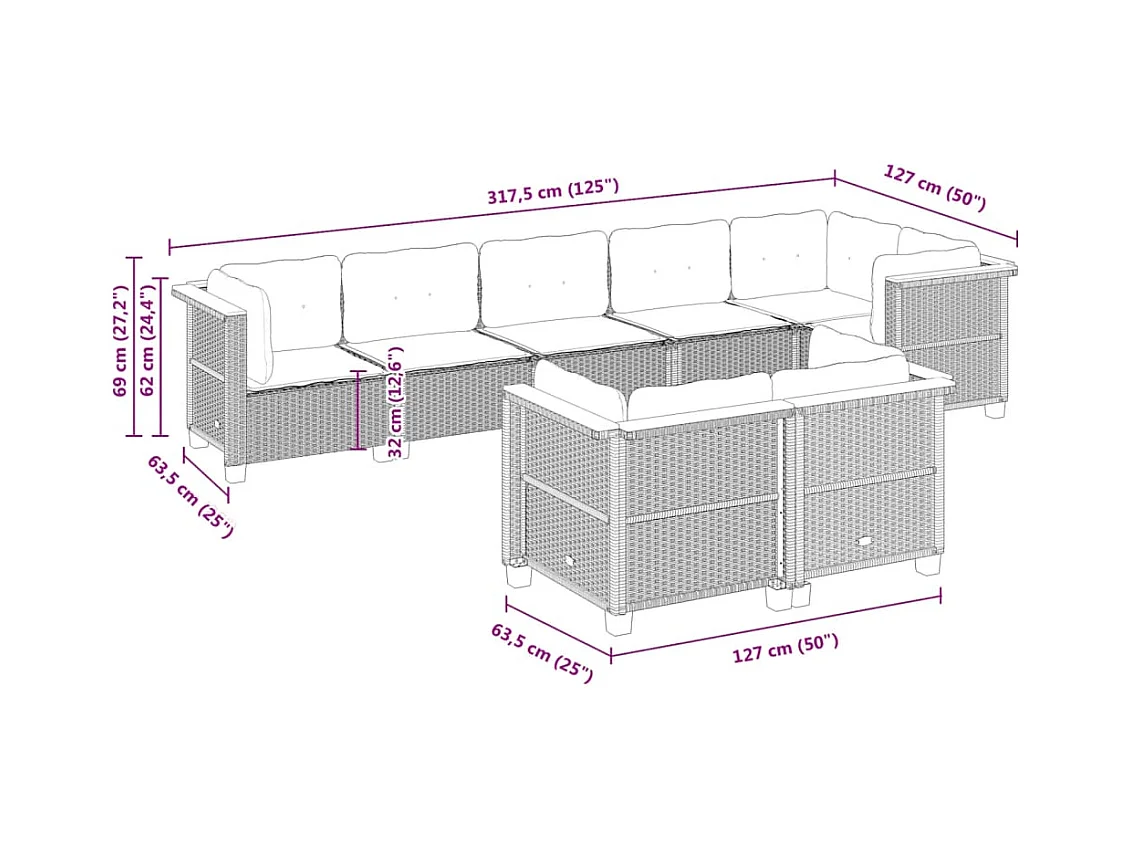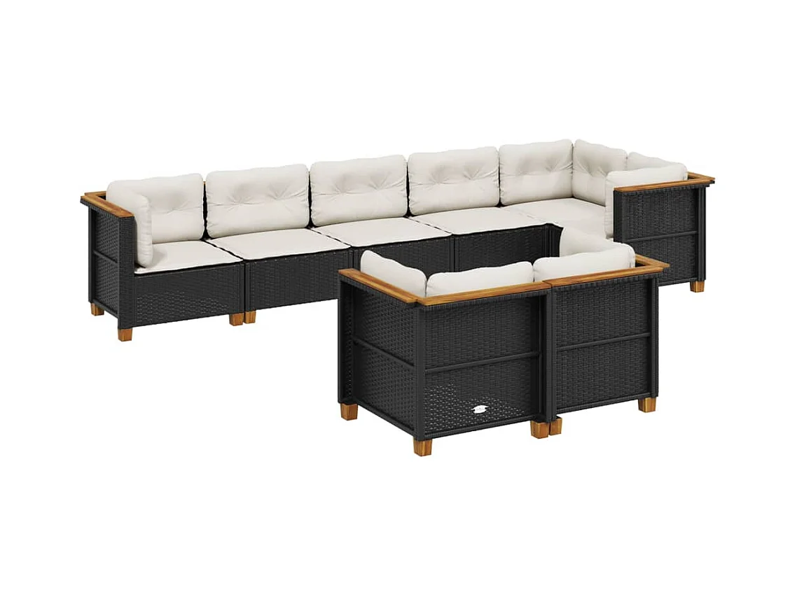 Salon de jardin 8 pièces avec coussins noir résine tressée