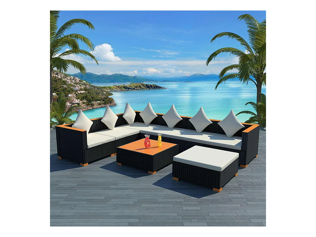 Salon de jardin 8 pièces avec coussins noir résine tressée